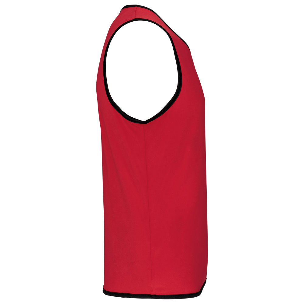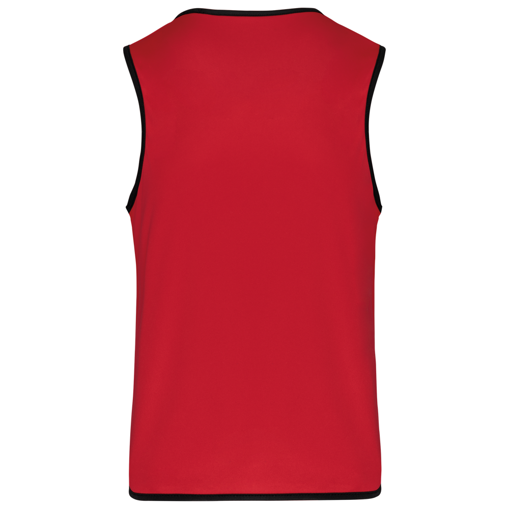 100% polyester. 2 genaaide lagen van elk 160 g/m². Contrasterend elastisch en versterkt boordje aan hals, mouwopeningen en onderkant voor een betere wrijvingsweerstand.