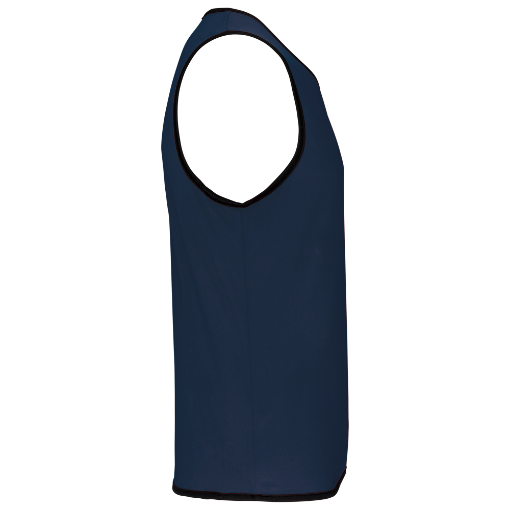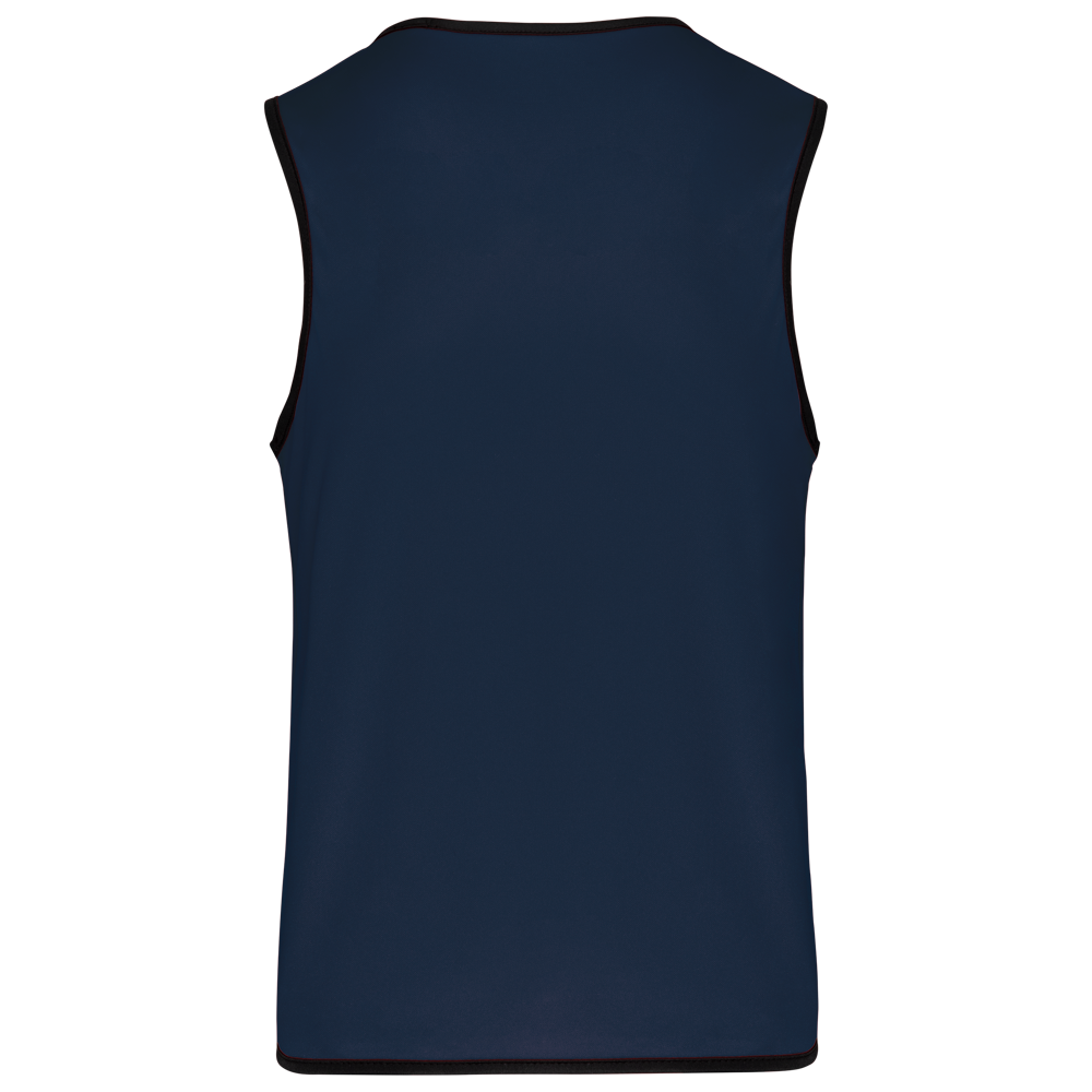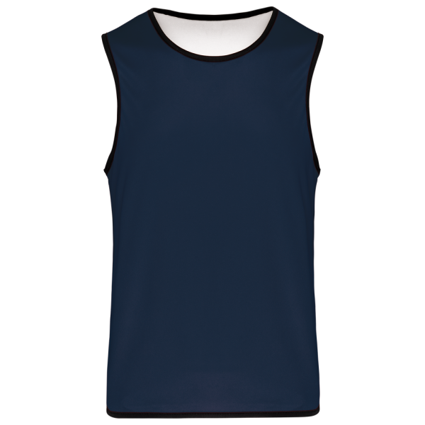 100% polyester. 2 genaaide lagen van elk 160 g/m². Contrasterend elastisch en versterkt boordje aan hals, mouwopeningen en onderkant voor een betere wrijvingsweerstand.