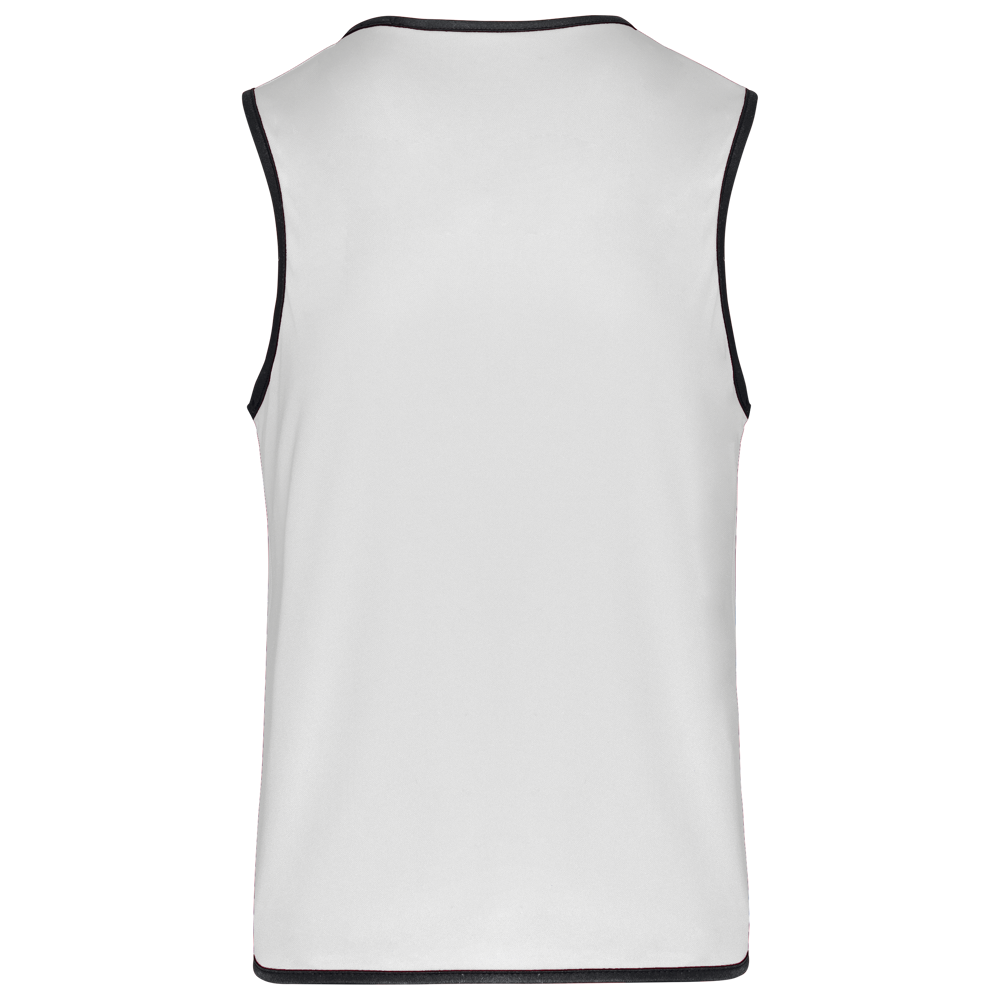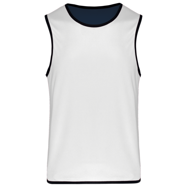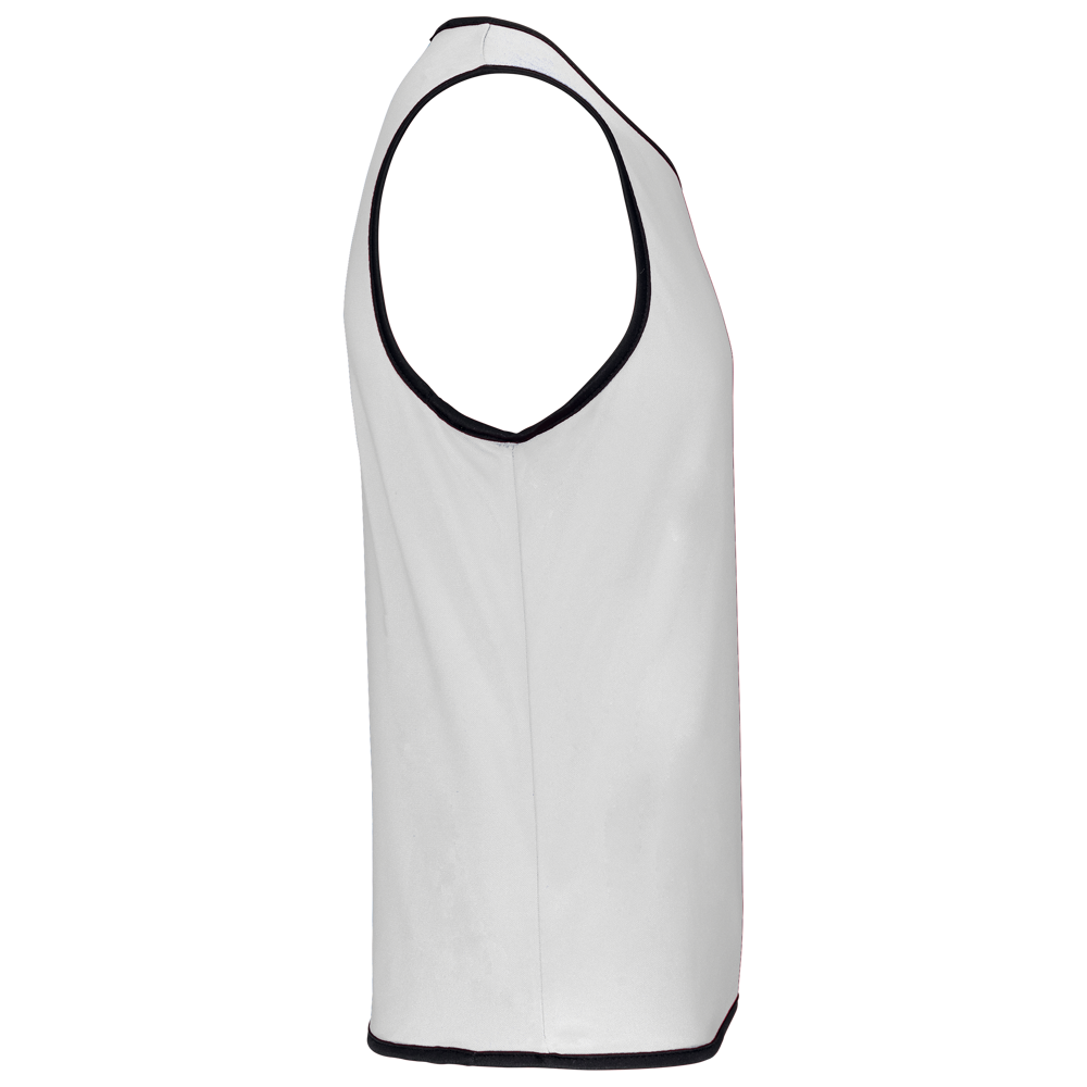 100% polyester. 2 genaaide lagen van elk 160 g/m². Contrasterend elastisch en versterkt boordje aan hals, mouwopeningen en onderkant voor een betere wrijvingsweerstand.