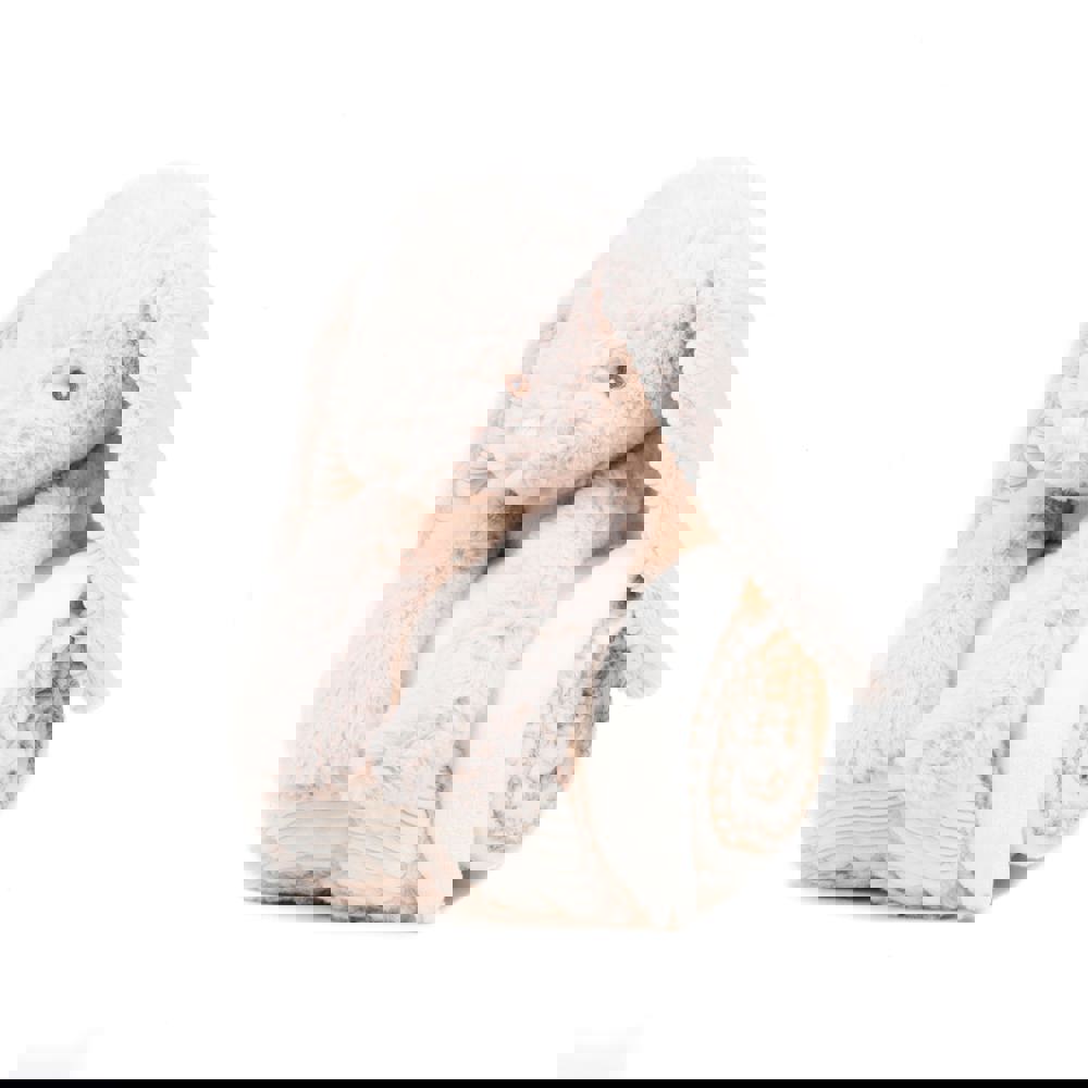 100% polyesterpluche. Lichtbruin zacht pluchen konijn. Contrasterende crèmekleurige corduroy onder de oren en op de poten. Haak- en lusbevestiging op de poten. Afzonderlijk crèmekleurig deken in microfleece met contrasterende stiksels op de rand. Geleverd in een presentatiezak met crèmekleurig lint. Verwijder alle kaartjes en hun bevestigingsmiddelen voordat u dit aan een kind geeft. Geschikt voor alle leeftijden. Voldoet aan de Europese veiligheidsvoorschriften voor speelgoed EN71.