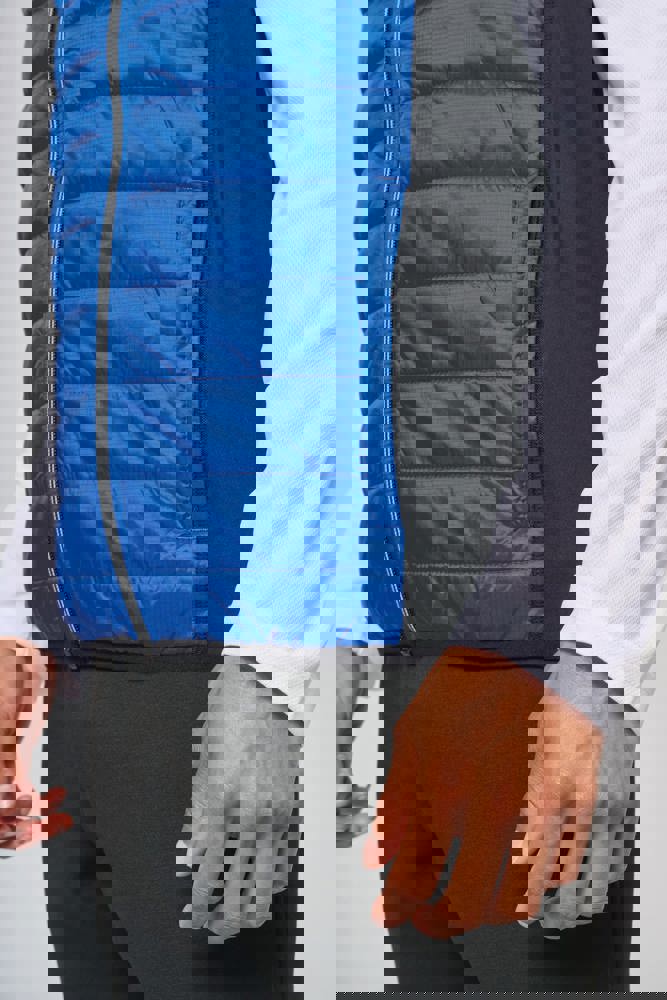 Buitenkant: 100% polyamide ripstop body met waterafstotende behandeling; zijkanten en achterkant 90% polyester / 10% elasthan. (Marl Grey / Sporty Navy: 100% polyester). Binnenvoering: 100% polyester. Ultra comfortabel materiaal. 2 zakken met rits aan de voorzijde. Contrasterende ritssluiting. Elastisch aan mouwuiteinden en onderkant. 1 drukkersrits aan de hartzijde.