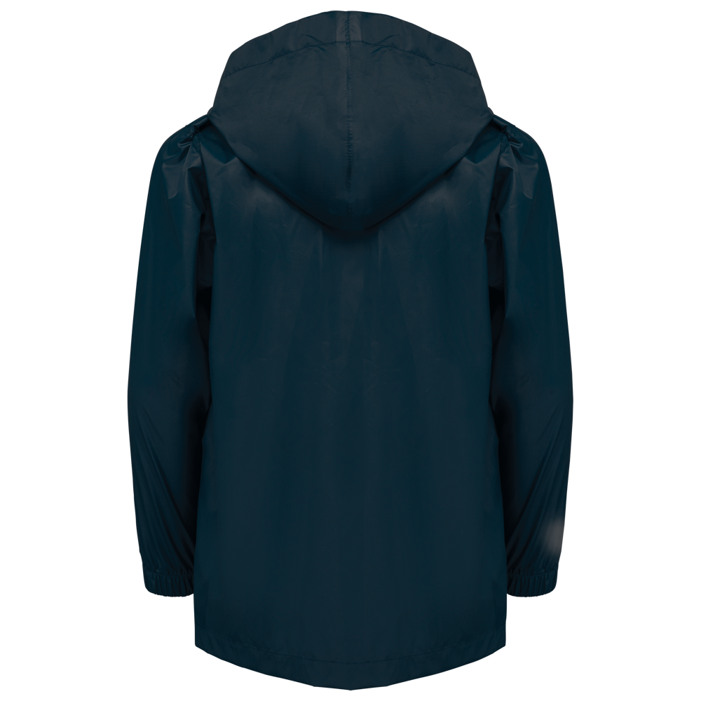 100% mat 210T polyester met PU-coating. Waterdichte stof 1500 mm. Waterdichte, thermisch verzegelde schoudernaden en capuchon. 2 zijzakken met rits en ritstrekker. 2 binnenzakken. Contrasterende ritssluiting vooraan. Capuchon in de kraag met klittenbandbevestiging. Elastische mouwuiteinden. Afneembaar merklabel.