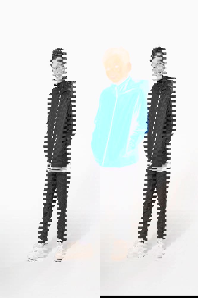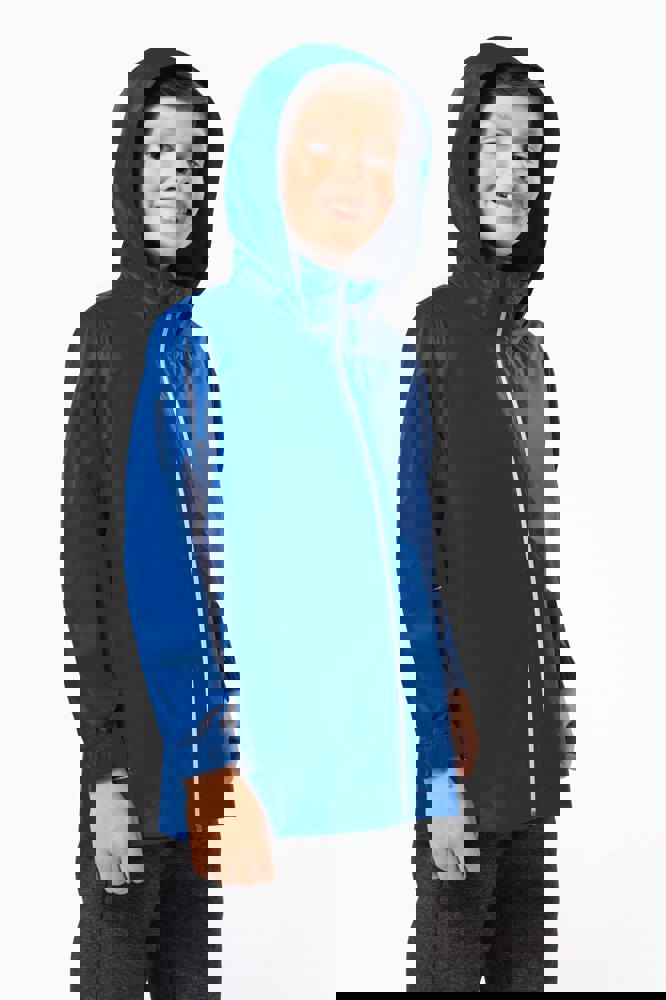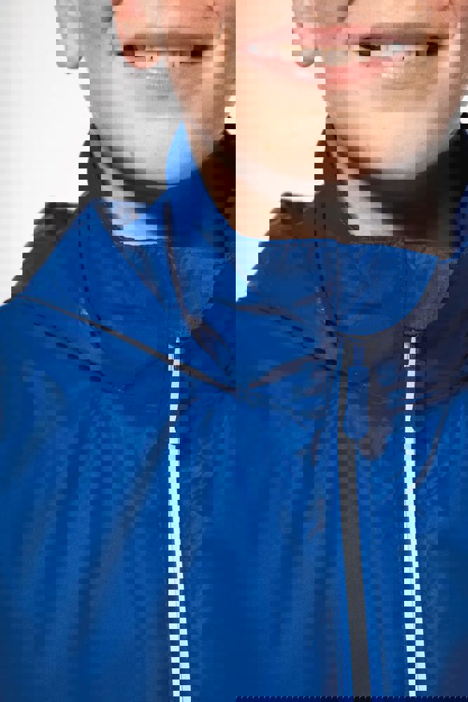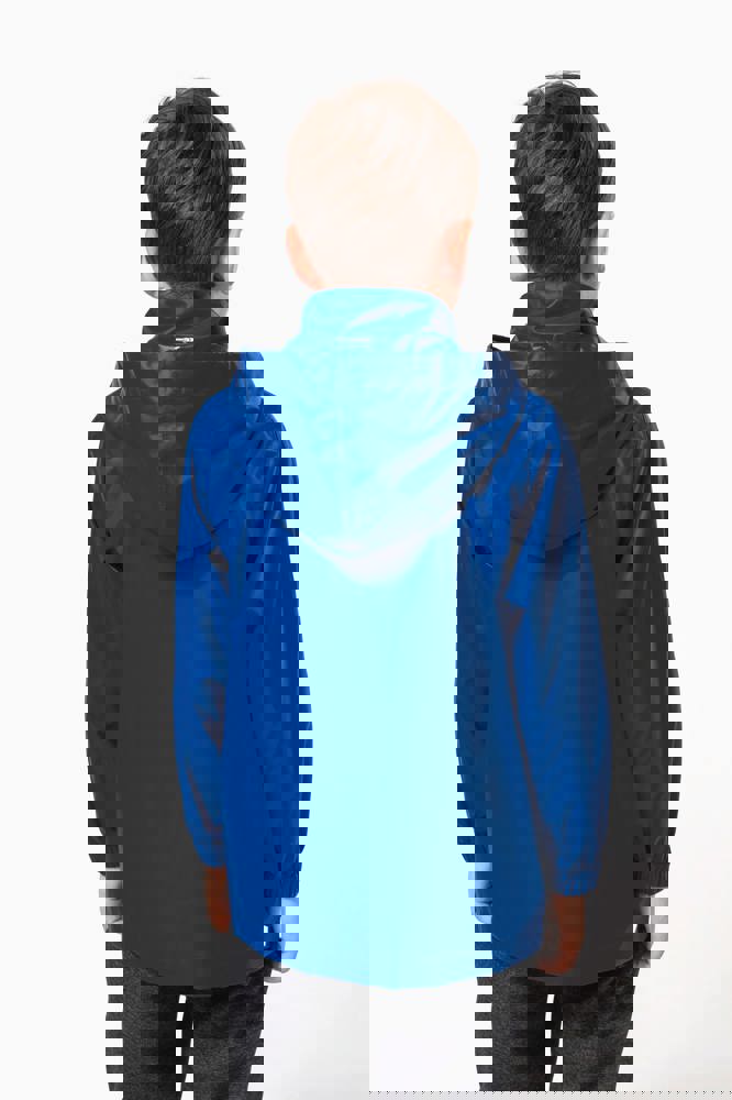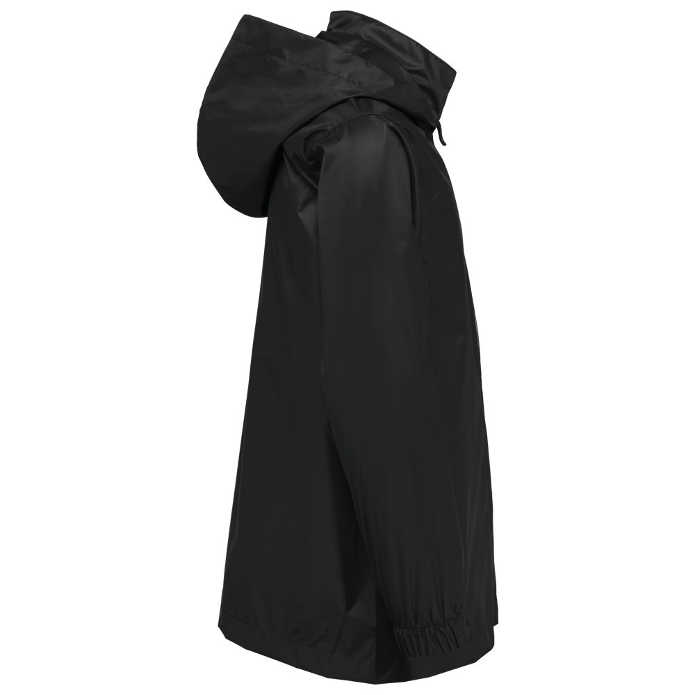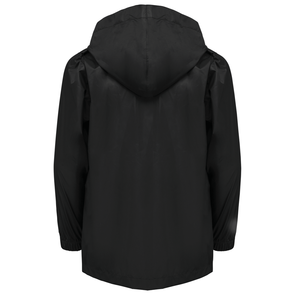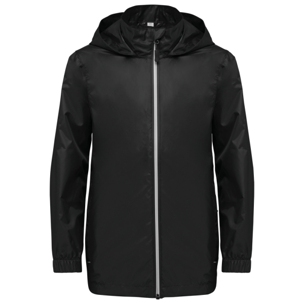 100% mat 210T polyester met PU-coating. Waterdichte stof 1500 mm. Waterdichte, thermisch verzegelde schoudernaden en capuchon. 2 zijzakken met rits en ritstrekker. 2 binnenzakken. Contrasterende ritssluiting vooraan. Capuchon in de kraag met klittenbandbevestiging. Elastische mouwuiteinden. Afneembaar merklabel.
