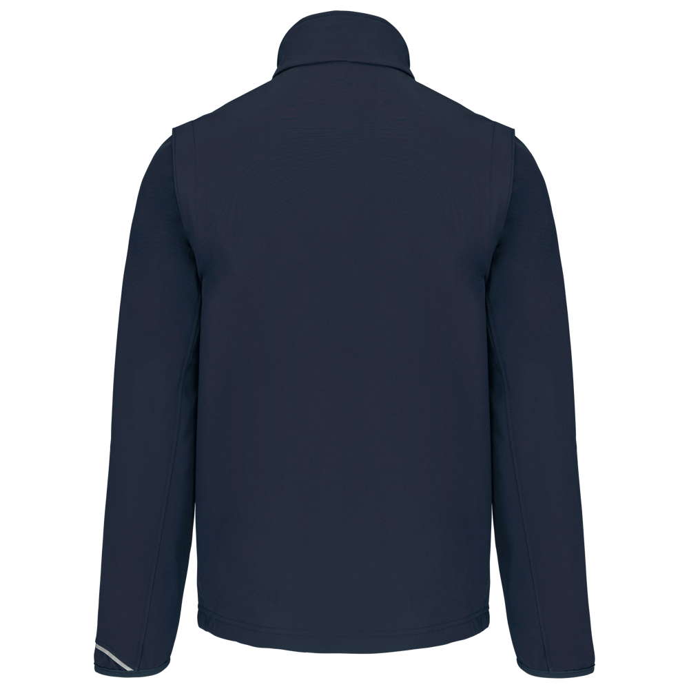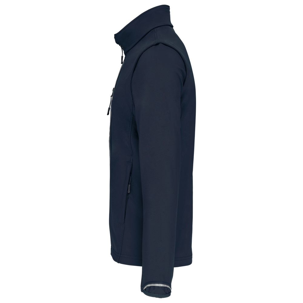 Stof in 3 lagen aan elkaar geklit, ademend 3000 g/m2/24H en 8000 mm waterdicht. Buitenkant: 95% polyester / 5% elasthan. Tussenlaag: ademend membraan. Binnenkant: microfleece. Ritssluiting met reflecterende bies. 2 zijzakken met rits en 1 borstzak met rits. Afneembare mouwen. Elastische mouwuiteinden met reflecterende bies.