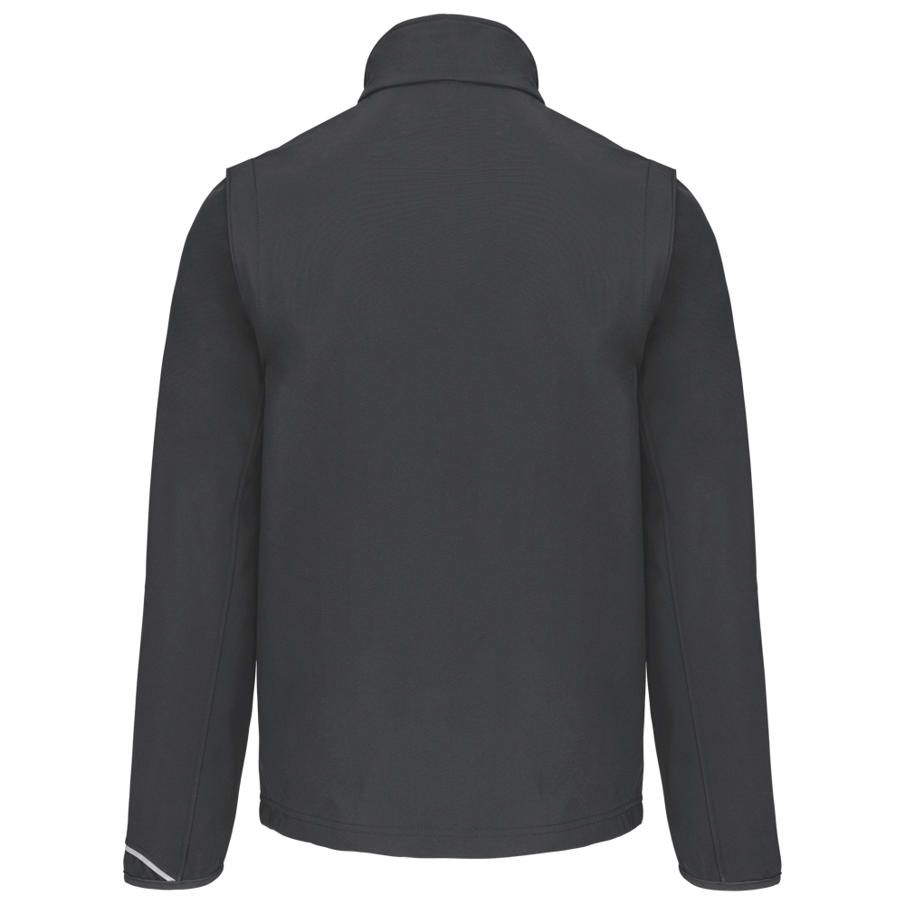 Stof in 3 lagen aan elkaar geklit, ademend 3000 g/m2/24H en 8000 mm waterdicht. Buitenkant: 95% polyester / 5% elasthan. Tussenlaag: ademend membraan. Binnenkant: microfleece. Ritssluiting met reflecterende bies. 2 zijzakken met rits en 1 borstzak met rits. Afneembare mouwen. Elastische mouwuiteinden met reflecterende bies.