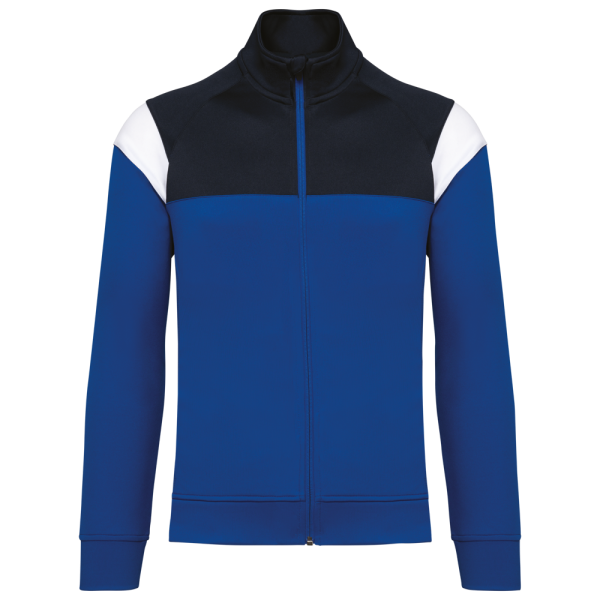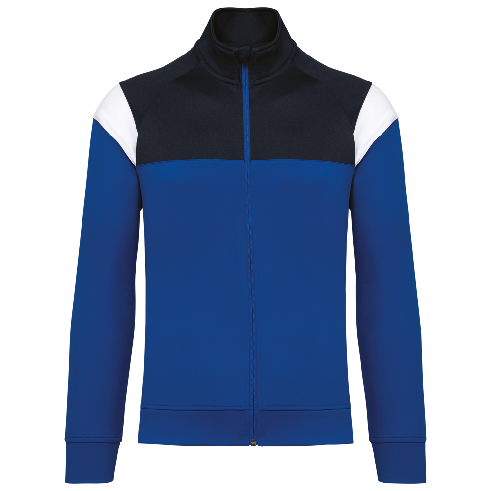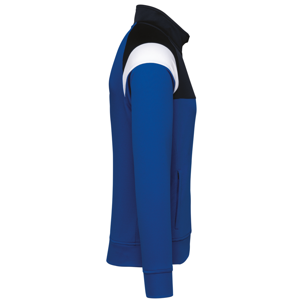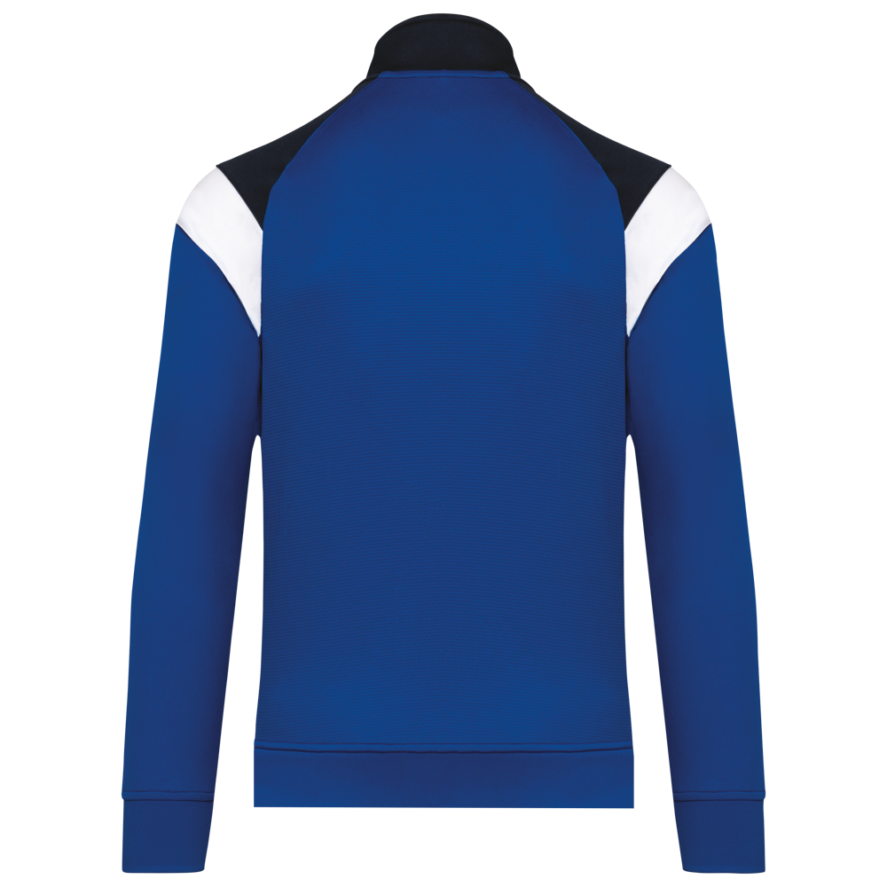 100% mat interlockpolyester. Rechte snit. Sluit vooraan met een omgekeerde ton-sur-ton nylonrits. Raglanmouwen met contrasterende inzetsels aan de schouder. Contrasterend inzetsel aan schouder en borst. 2 ritszakken aan de voorkant. Inzetsels in textuurstof opzij en achteraan. Ritsafdekking boven aan de kraag, voor meer comfort. Afneembaar merklabel voor eenvoudige personalisatie.