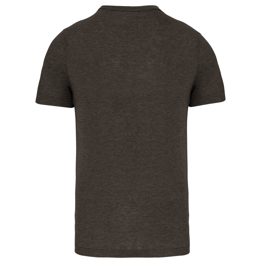 50% polyester / 25% katoen / 25% viscose. Jerseystof. Toon-op-toon nektape. Dubbel stiksel aan mouwuiteinden en onderkant. Geen merklabel in de kraag, maar enkel een maatlabel voor eenvoudige personalisatie.