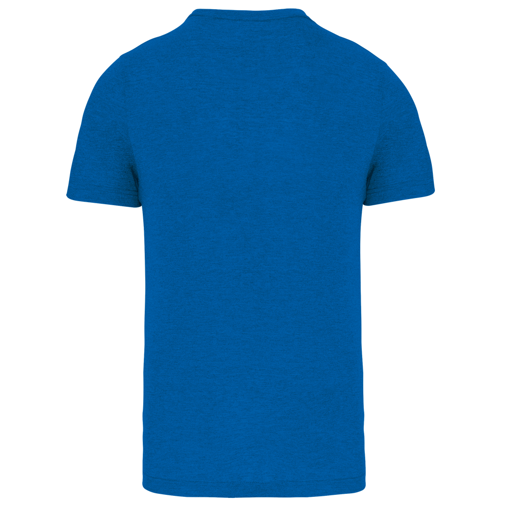 50% polyester / 25% katoen / 25% viscose. Jerseystof. Toon-op-toon nektape. Dubbel stiksel aan mouwuiteinden en onderkant. Geen merklabel in de kraag, maar enkel een maatlabel voor eenvoudige personalisatie.