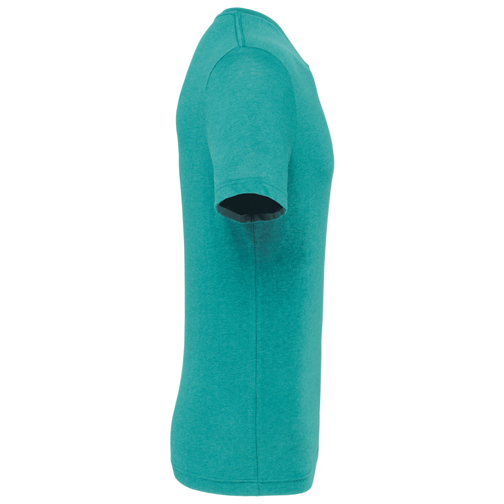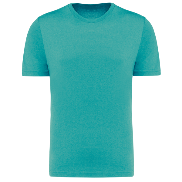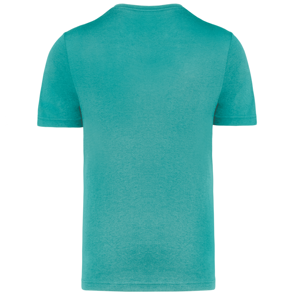 50% polyester / 25% katoen / 25% viscose. Jerseystof. Toon-op-toon nektape. Dubbel stiksel aan mouwuiteinden en onderkant. Geen merklabel in de kraag, maar enkel een maatlabel voor eenvoudige personalisatie.