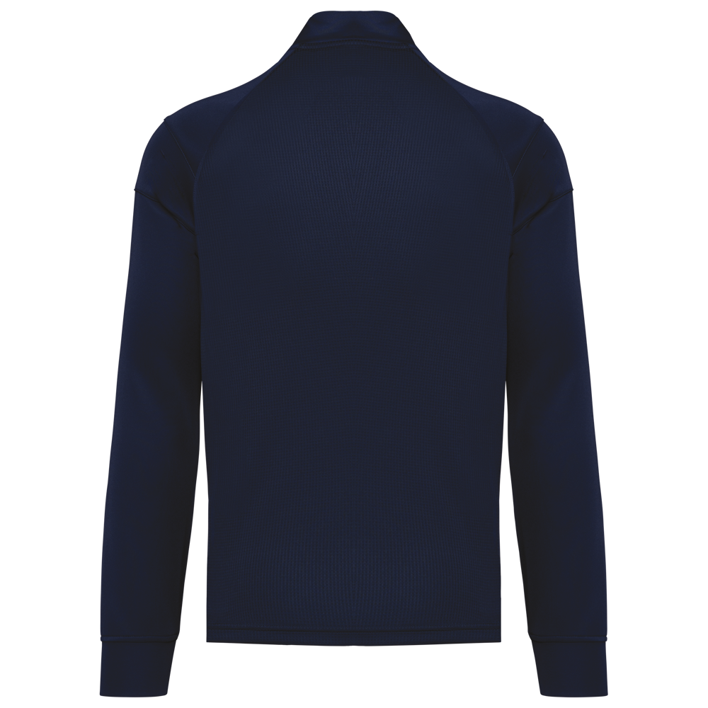 96% gerecycleerd polyester / 4% elasthan. Rechte snit. Sluit vooraan met een omgekeerde ton-sur-ton rits van gerecycleerd nylon. Raglanmouwen met inzetsels aan de schouder. Mouwuiteinden in de hoofdstof. 2 ritszakken aan de voorkant. Ton-sur-ton textuurstof opzij en achteraan. Ritsafdekking boven aan de kraag, voor meer comfort. Zoom onderaan. Verlengd achterpand en zijsplitten voor een grote bewegingsvrijheid. Afneembaar merklabel voor eenvoudige personalisatie.