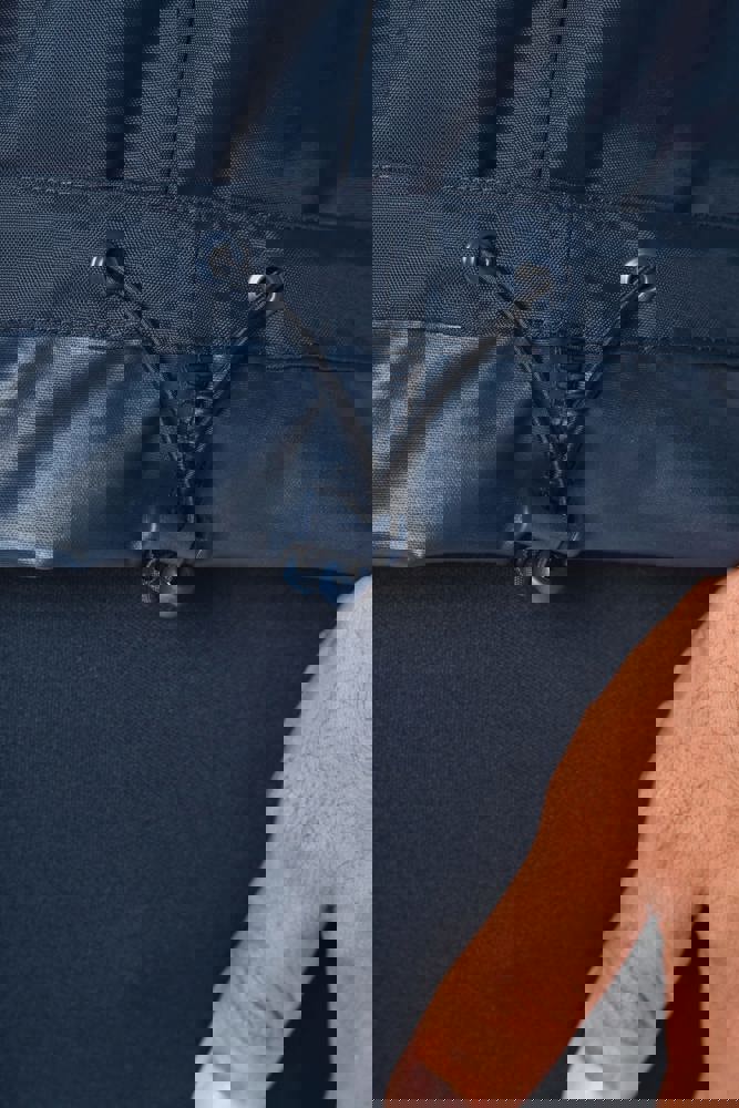 100% polyamide Oxford. PU-versteviging. Waterdichte stof 1500 mm. Thermisch verzegelde naden aan de armsgaten. Raglanmouwen. V-hals met 1x1 ribboord. Verluchtingsgaatjes in de oksels. Contrasterend biesje aan de armsgaten. Elastische mouwuiteinden. Aanrijgkoordjes met stopper bevestigd aan de binnenzoom. Afneembaar merklabel.