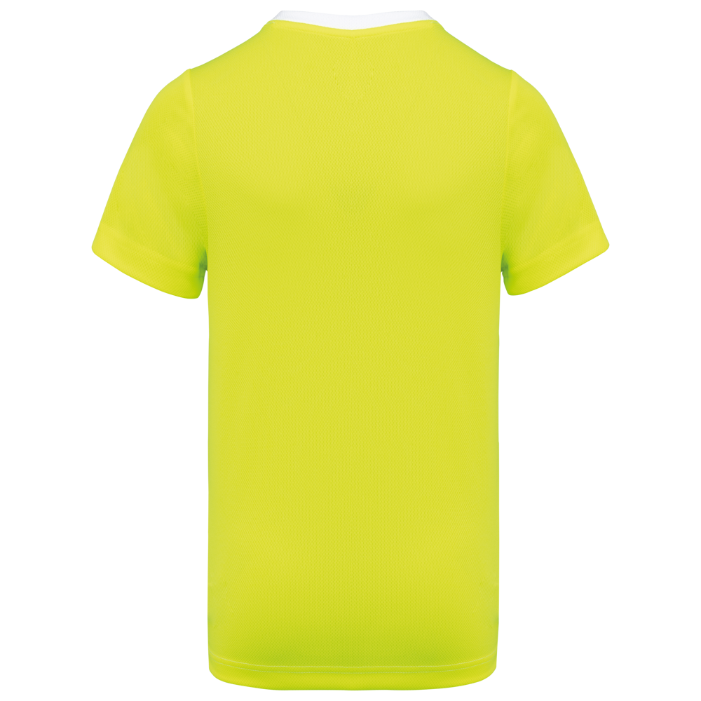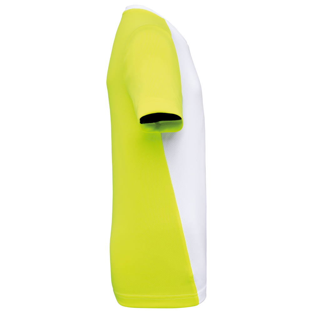 100% post-consumer gerecycled birdseye-polyester. Lichte, sneldrogende stof. Rechte snit. Ronde hals met nektape. Ingezette mouwen. Contrasterende uitsnijdingen op schouders, mouwen en paneel met biesje voor- en achteraan. Dubbel stiksel op mouwuiteinden en boord onderaan. Afneembaar merklabel.