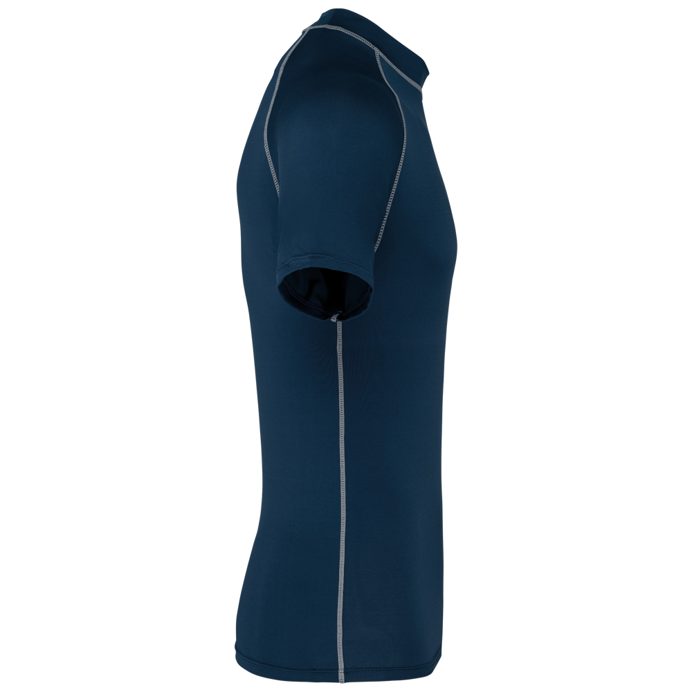 88% polyester / 12% elasthan. Stretchtricot. Bescherming UV 40+ in overeenstemming met de EN13758-1&2-norm. Korte mouwen. Opstaande kraag. Heel nauw aansluitende snit. Elastische gesp in de zoom vooraan om het koordje van de short door te steken en het T-shirt zo op zijn plaats te houden. Contrasterende stiksels. Mouwuiteinden en onderkant afgewerkt met dubbel stiksel.