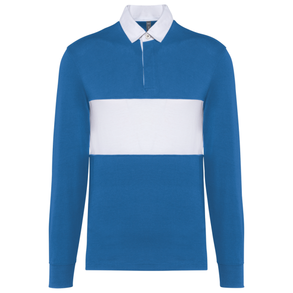 100 % katoen. Jerseystof. Regular fit. Kraag en knooplijst aan de binnenkant van wit twillkatoen. Knooplijst met 3 rubberen knopen. Mouwuiteinden in ribboord 1x1. Toon-op-toon nektape met visgraatmotief aan de kraag. Centrale strook aan de voorkant en de achterkant in contrasterende kleur. Zijsplitten onderaan met toon-op-toon visgraatmotief. Dubbel stiksel aan de mouwinzetten en -uiteinden. Afwerkingen met dubbel stiksel onderaan. Afneembaar merklabel.