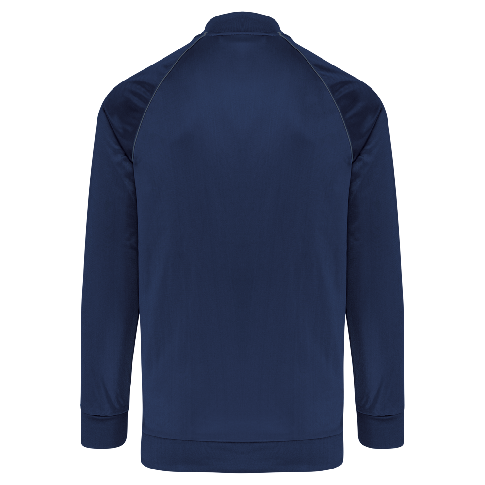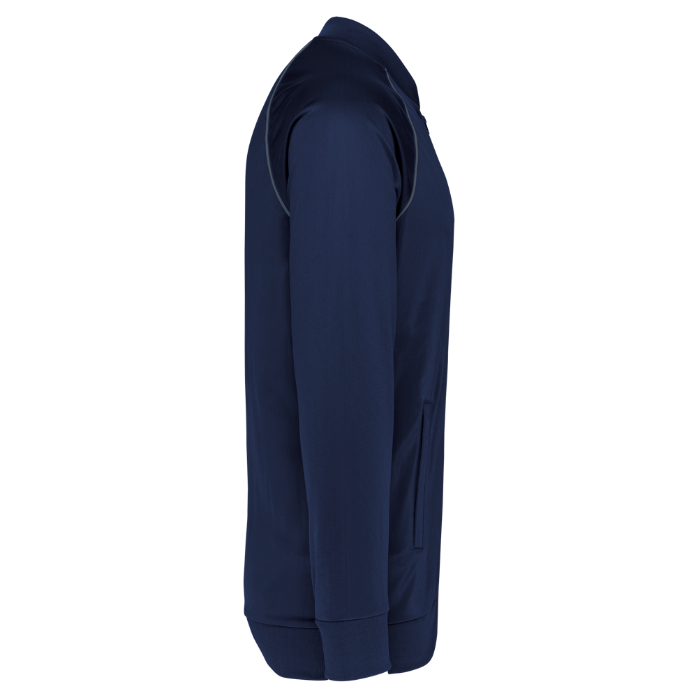100% tricotpolyester. Rechte snit. Toon op toon ritssluiting in nylon. Raglanmouwen met contrasterend biesje. 1x1 ribboord aan kraag, mouwuiteinden en onderkant. 2 ritszakken aan de zijkant. Afneembaar merklabel voor eenvoudige personalisatie.