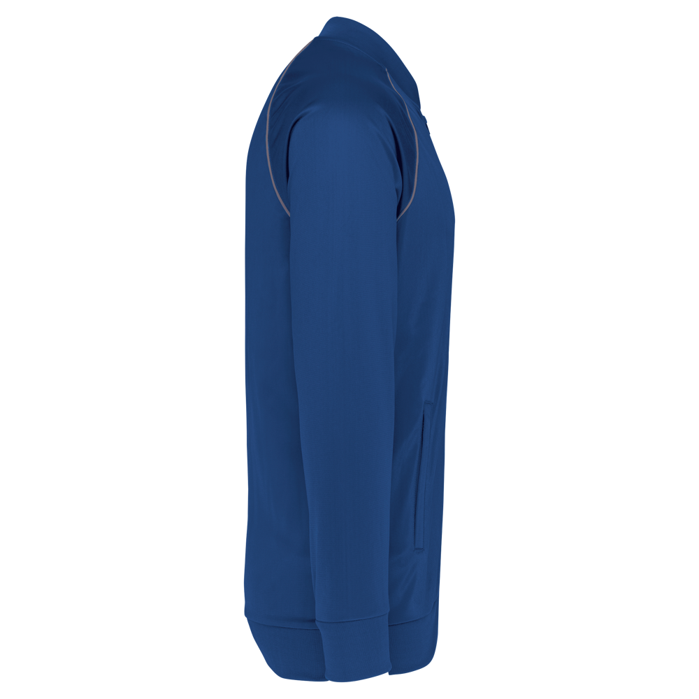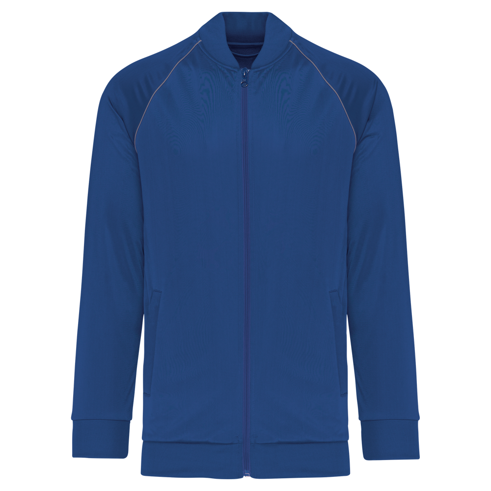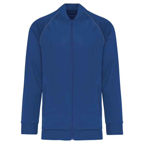 100% tricotpolyester. Rechte snit. Toon op toon ritssluiting in nylon. Raglanmouwen met contrasterend biesje. 1x1 ribboord aan kraag, mouwuiteinden en onderkant. 2 ritszakken aan de zijkant. Afneembaar merklabel voor eenvoudige personalisatie.