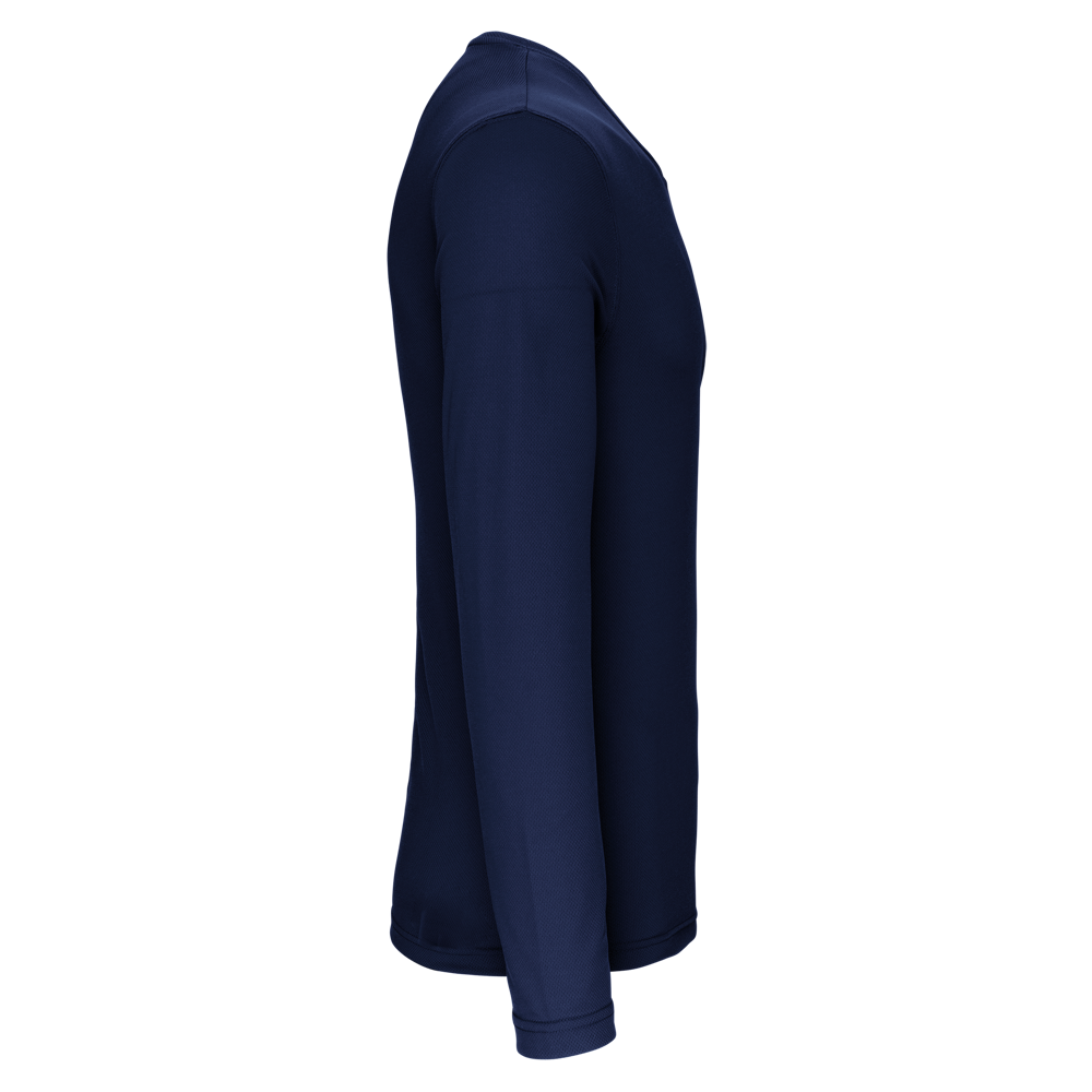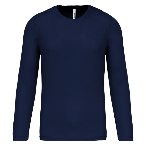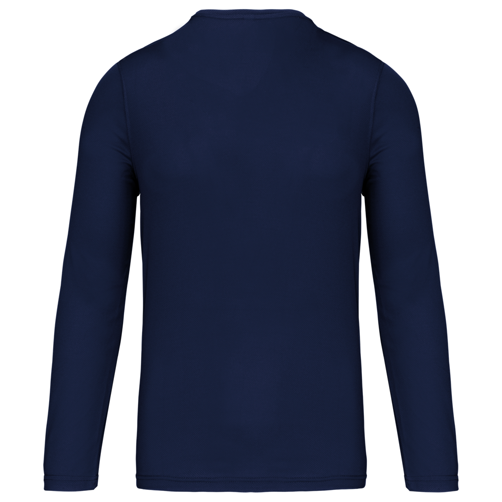 100% polyester. Sneldrogende lichte stof. Ronde hals. Nektape. Afwerking met dubbele stiksels aan de mouwuiteinden en onderkant.