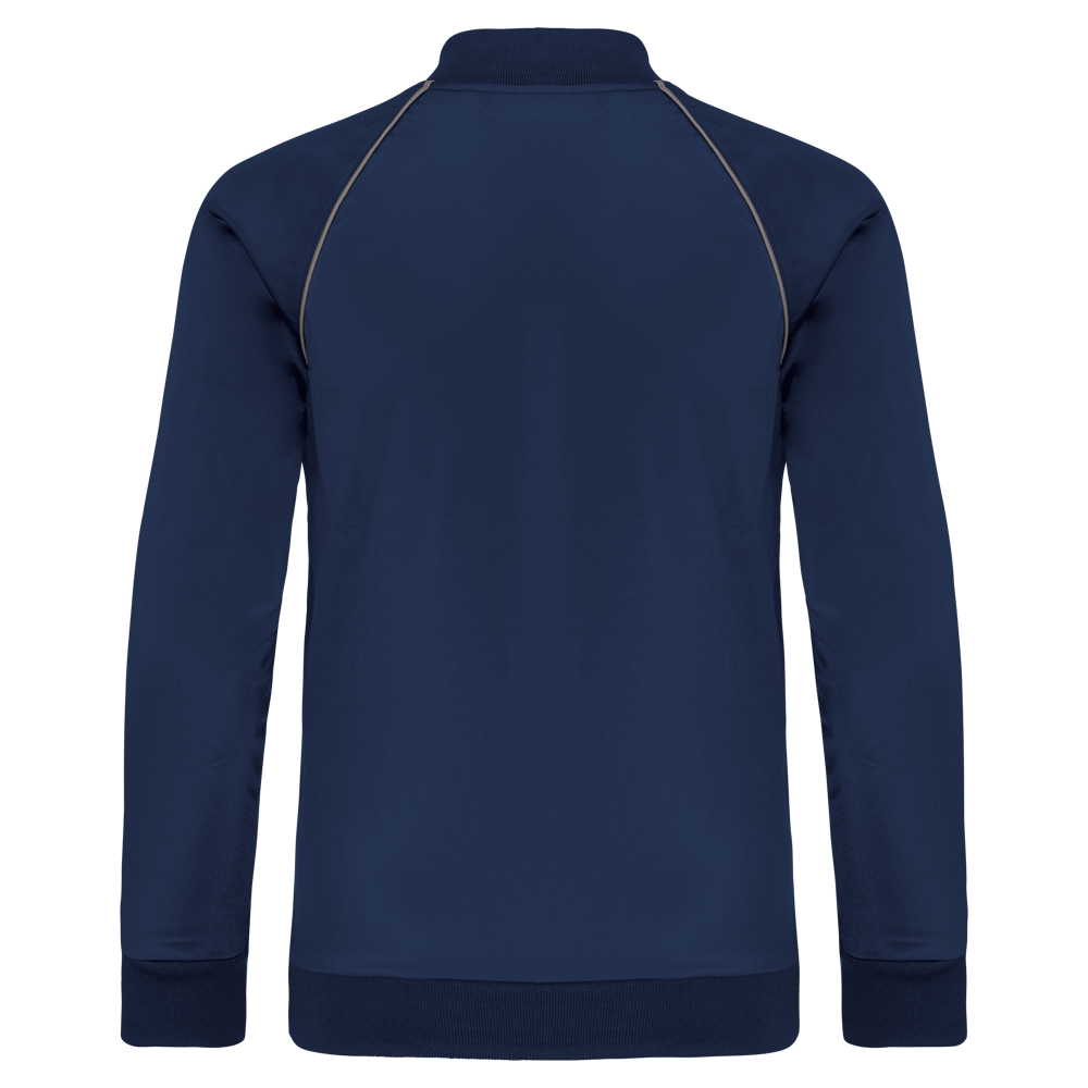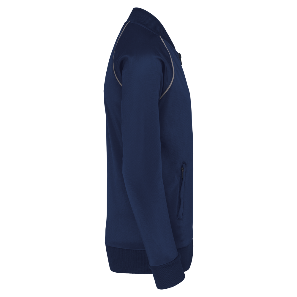 100% tricotpolyester. Rechte snit. Toon op toon ritssluiting in nylon. Raglanmouwen met contrasterend biesje. 1x1 ribboord aan kraag, mouwuiteinden en onderkant. 2 ritszakken aan de zijkant. Afscheurbaar merklabel voor eenvoudige personalisatie.