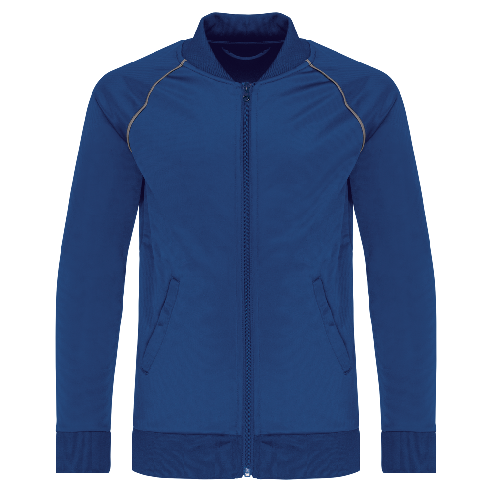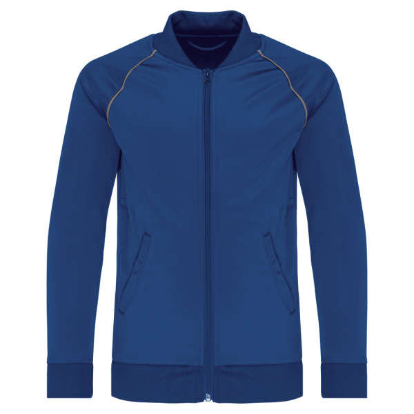 100% tricotpolyester. Rechte snit. Toon op toon ritssluiting in nylon. Raglanmouwen met contrasterend biesje. 1x1 ribboord aan kraag, mouwuiteinden en onderkant. 2 ritszakken aan de zijkant. Afscheurbaar merklabel voor eenvoudige personalisatie.