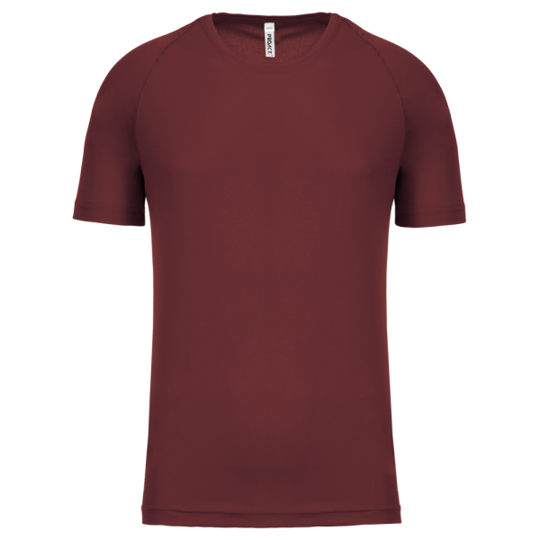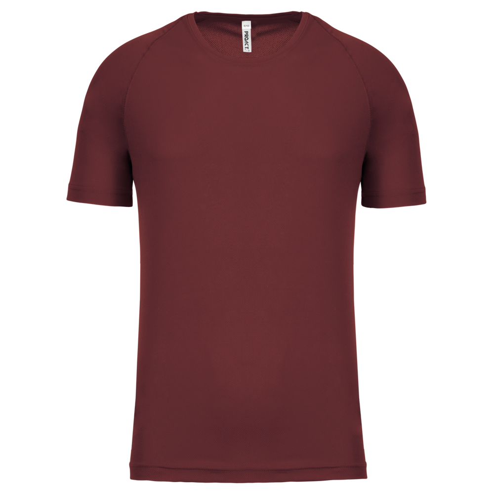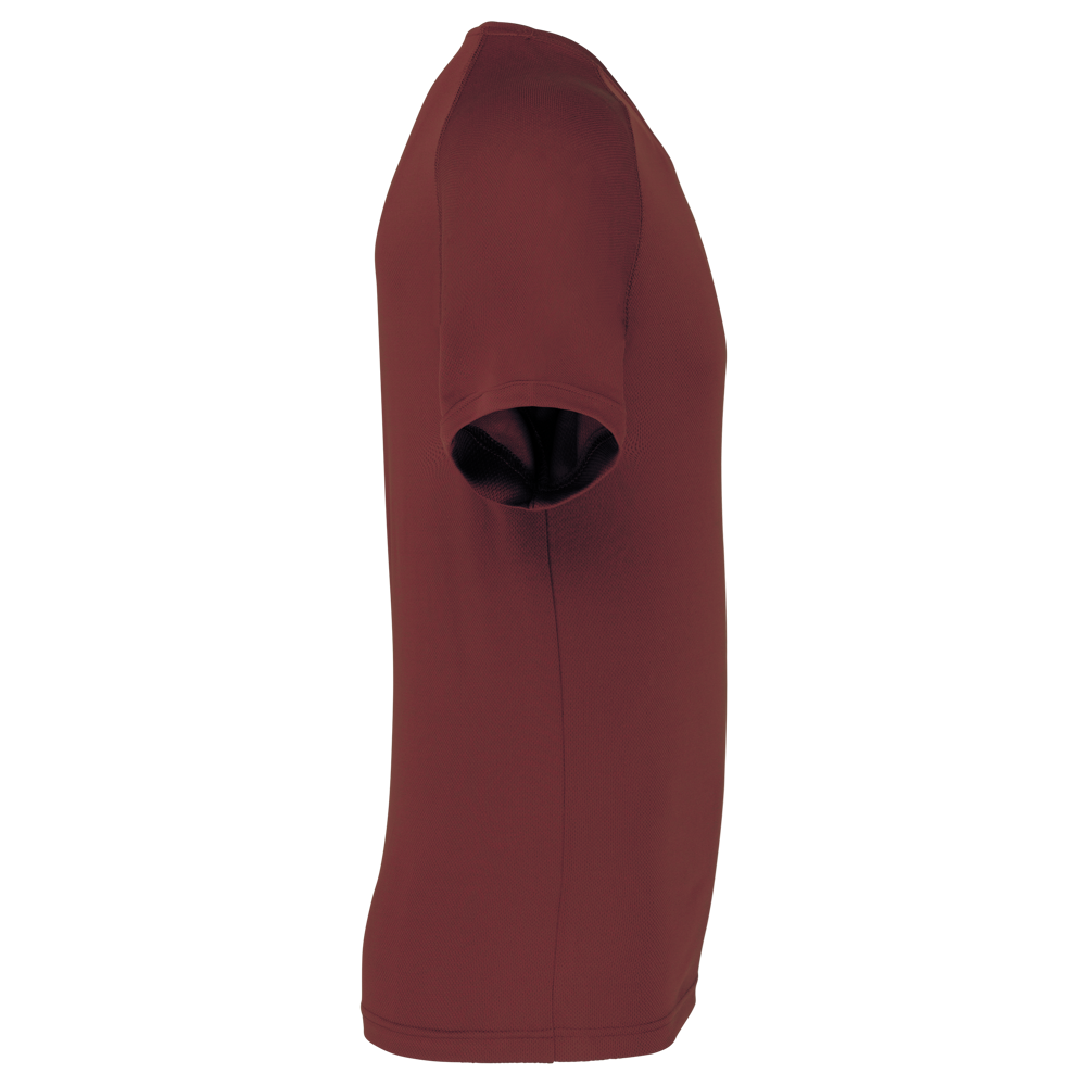 100% polyester. Sneldrogende lichte stof. Ronde hals. Nektape. Raglan mouwen met overstiksels. Afwerking met dubbele stiksels aan de mouwuiteinden en onderkant.