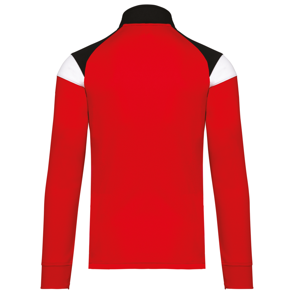 100% mat interlockpolyester. Rechte snit. Kraag met een omgekeerde ton-sur-ton nylonrits. Raglanmouwen met contrasterende inzetsels aan de schouder. Contrasterend inzetsel aan schouder en borst. Inzetsels in textuurstof opzij en achteraan. Zoom onderaan en verlengd achterpand. Zijsplitten voor meer gemak. Ritsafdekking boven aan de kraag, voor meer comfort. Afneembaar merklabel voor eenvoudige personalisatie.