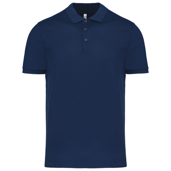 100% piquépolyester Cool Plus®. Rechte snit en moderne look. Kraag en mouwuiteinden in contrasterende ribboord. Knoopsluiting met 3 knopen (contrasterend of effen, afhankelijk van het model). Zijsplitten.