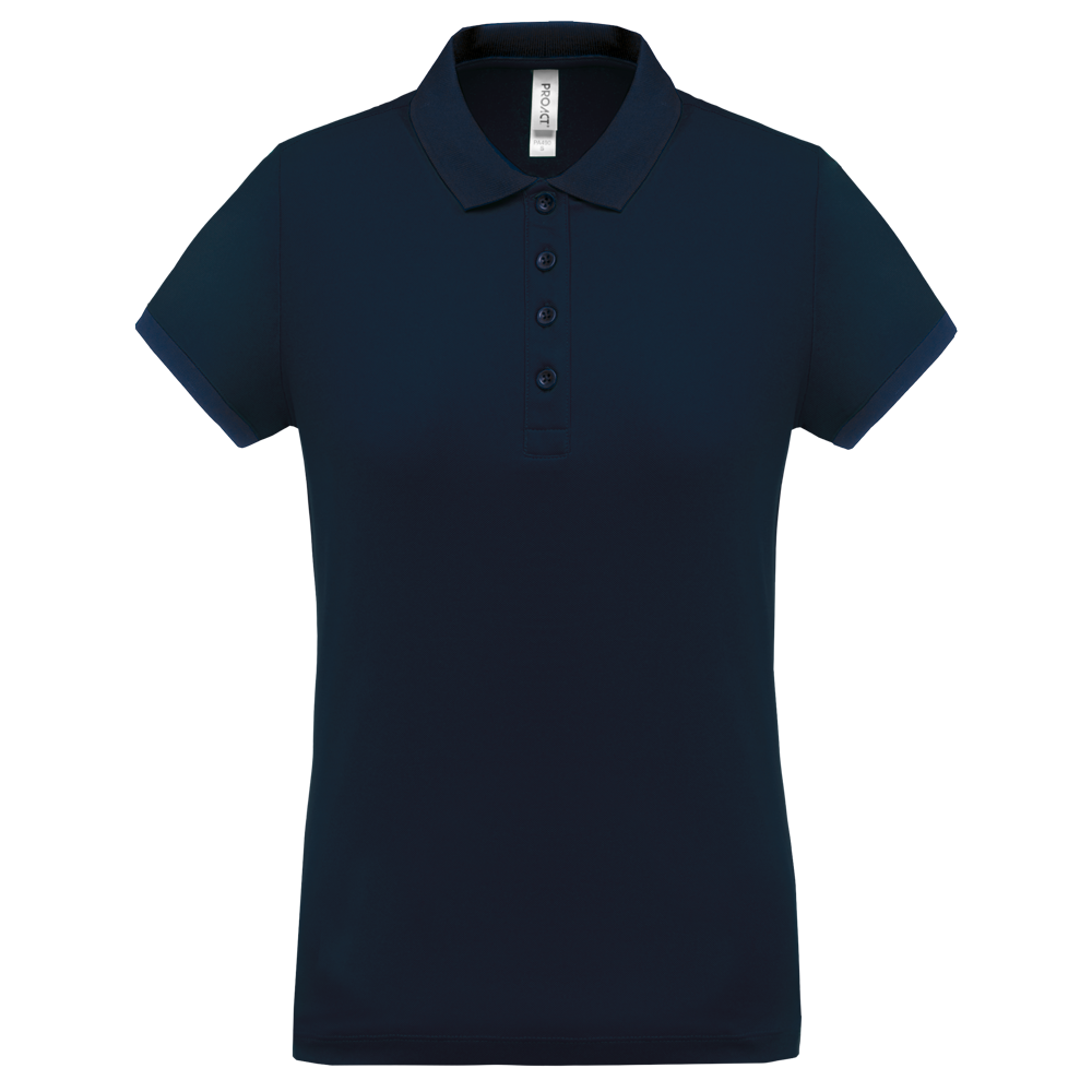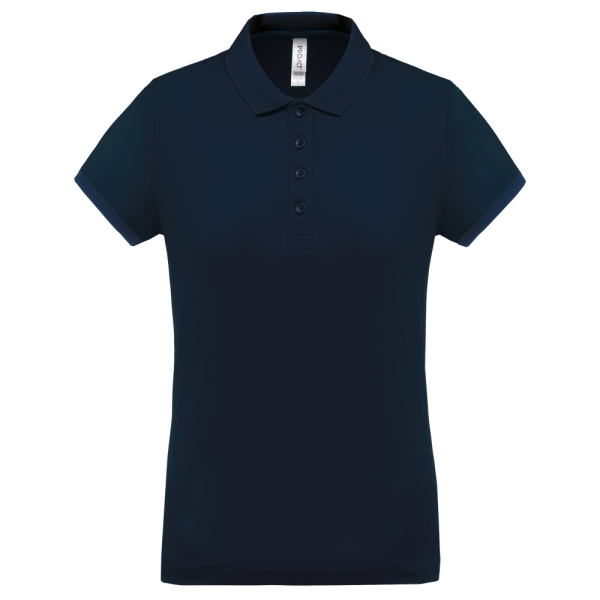 100% piquépolyester Cool Plus®. Getailleerde snit en moderne look. Kraag en mouwuiteinden in contrasterende ribboord. Knoopsluiting met 4 knopen (contrasterend of effen, afhankelijk van het model). Zijsplitten.