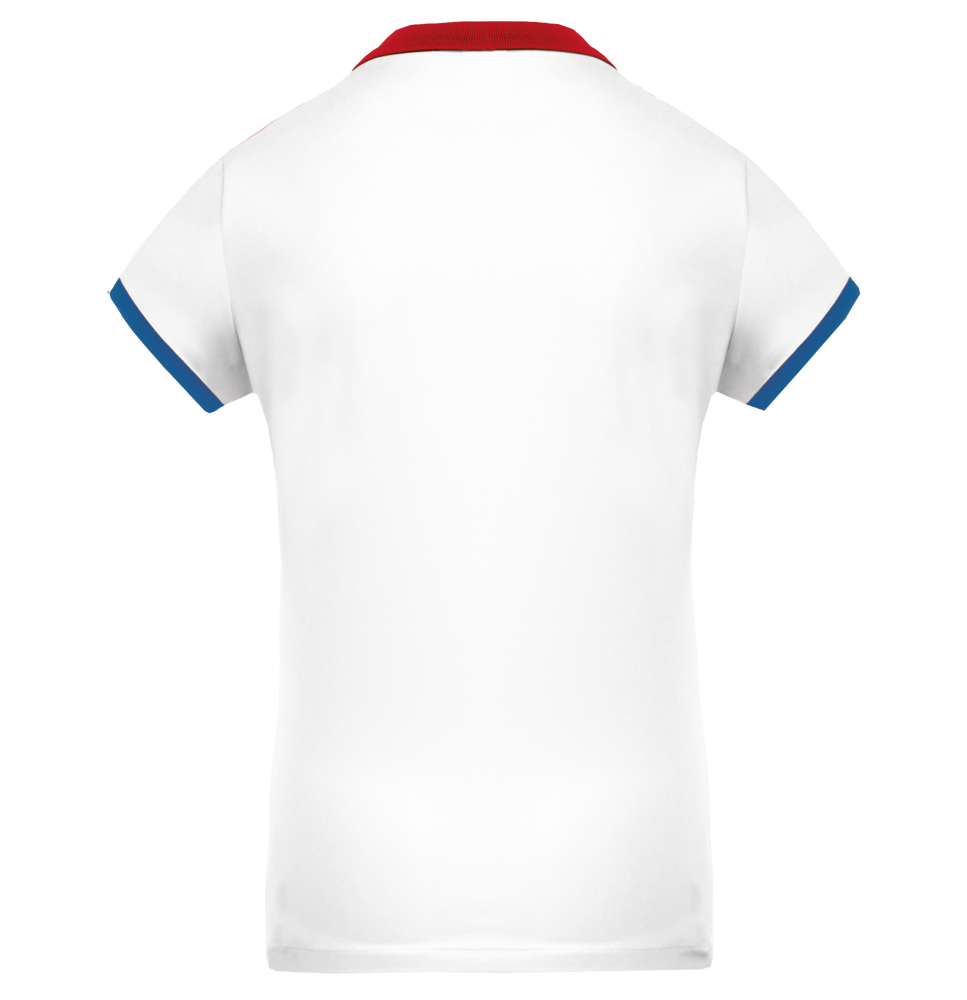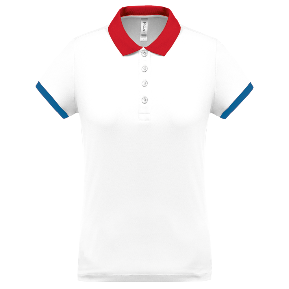 100% piquépolyester Cool Plus®. Getailleerde snit en moderne look. Kraag en mouwuiteinden in contrasterende ribboord. Knoopsluiting met 4 knopen (contrasterend of effen, afhankelijk van het model). Zijsplitten.