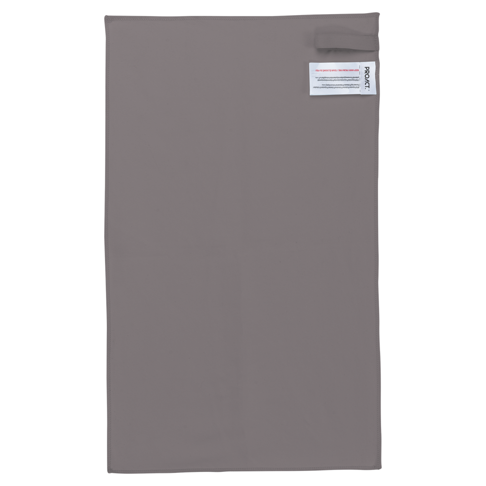 85% polyester / 15% polyamide. Licht, voor snel en doeltreffend drogen. Afgewerkt met overlocksteken en elastisch opvouw- /draagbandje.