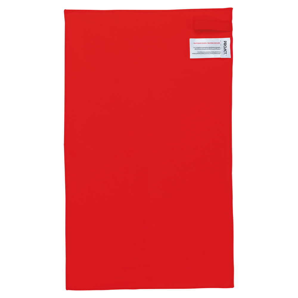 85% polyester / 15% polyamide. Licht, voor snel en doeltreffend drogen. Afgewerkt met overlocksteken en elastisch opvouw- /draagbandje.