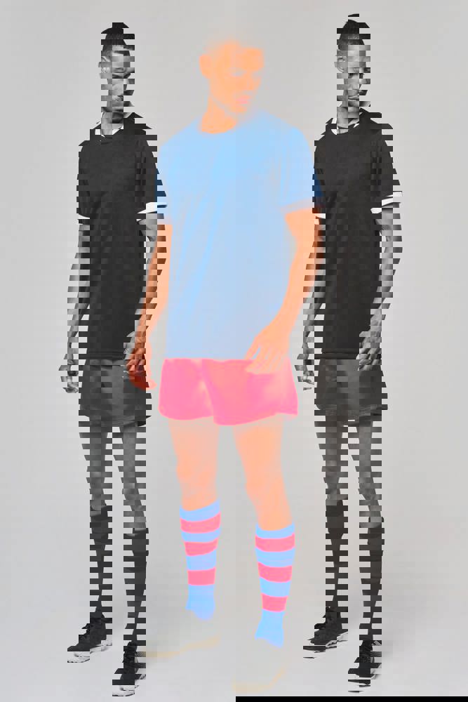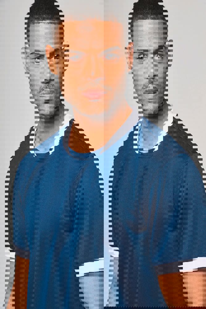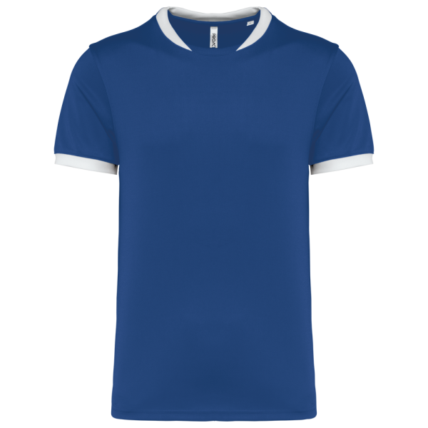 100% polyester. Interlock. Rechte snit. Cut-and-sew-techniek. Ronde hals in 1x1 ribtricot in contrasterend wit voor alle kleuren, met toon-op-toon interlock-inzetsel. Mouwuiteinden in 1x1 ribtricot in contrasterend wit voor alle kleuren. Toon-op-toon nektape van interlock. Verstevigde naden met dubbel stiksel aan de mouwuiteinden, de schouders en aan de zijkanten. Afwerking met dubbel stiksel aan de onderkant. Afneembaar merklabel.