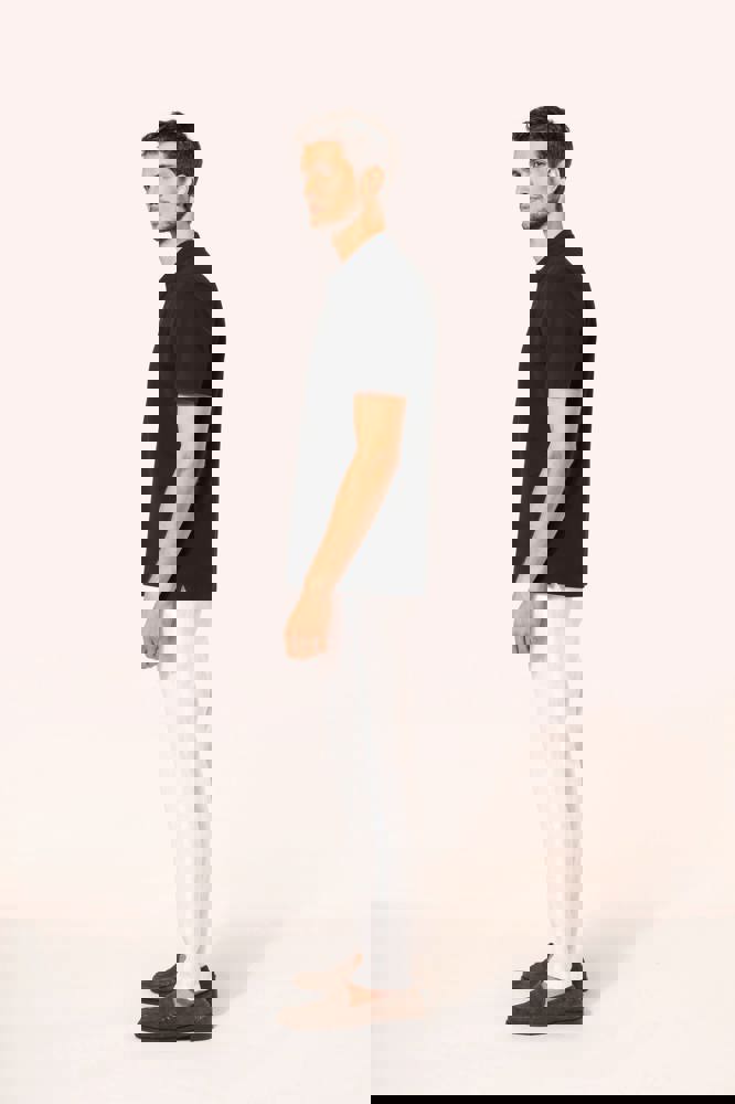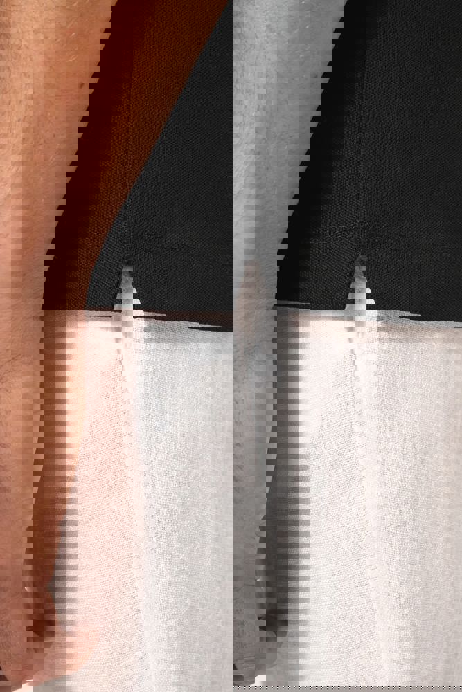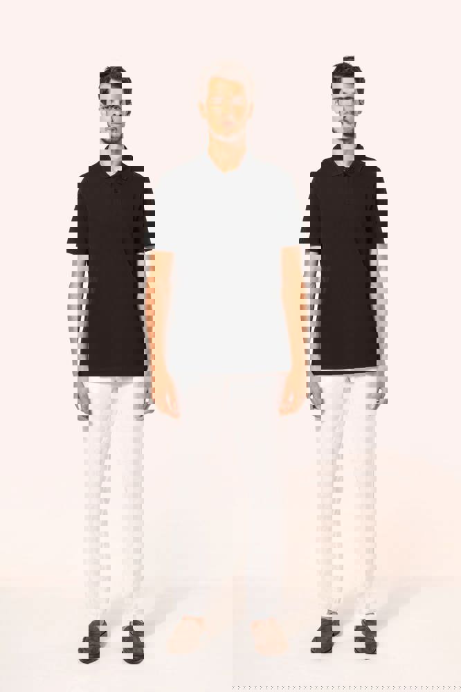 95% katoen / 5% elasthan. Piquétricot van Supima® katoen. Heel fijne, zachte en zijdeachtige stof van grote kwaliteit. Kraag in 1x1 ribboord, ton-sur-ton nektape aan de binnenkant van de kraag. Ton-sur-ton lijst met 2 knopen. Versteviging van de schoudernaad met een silicone bandje. De mouwuiteinden en onderkant zijn afgewerkt met een zoompje met dubbel stiksel. Geen merklabel in de kraag, maar enkel een maatlabel voor eenvoudige personalisatie.