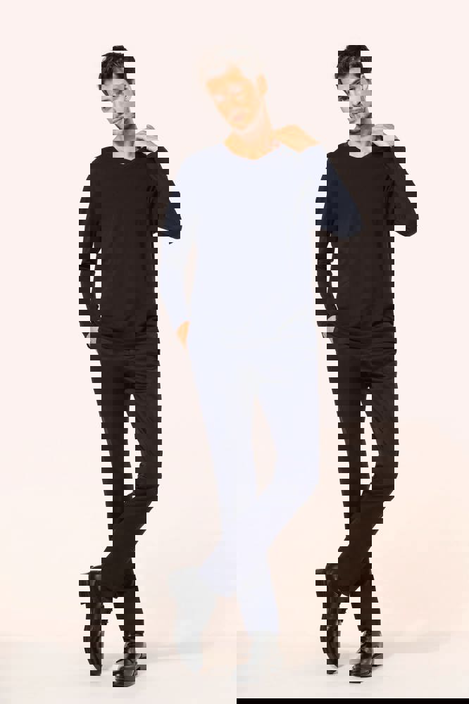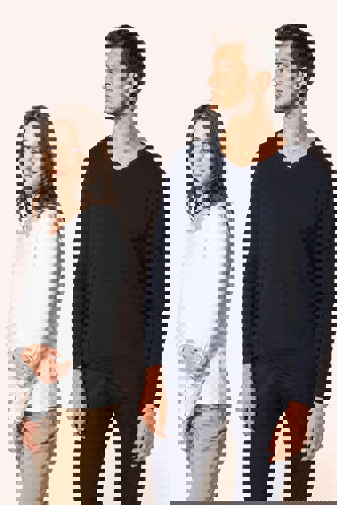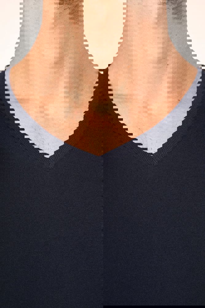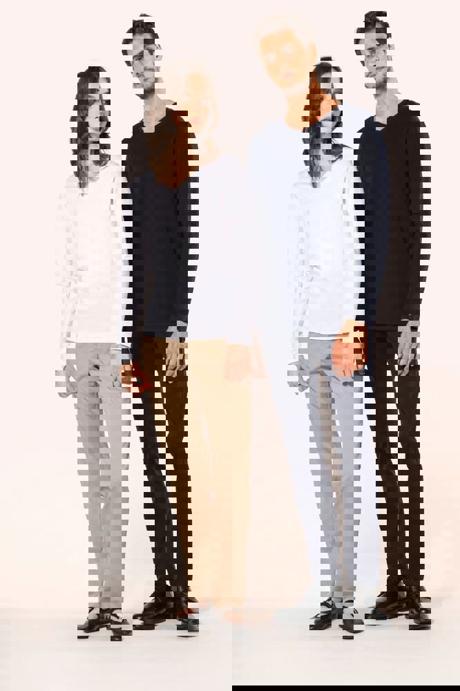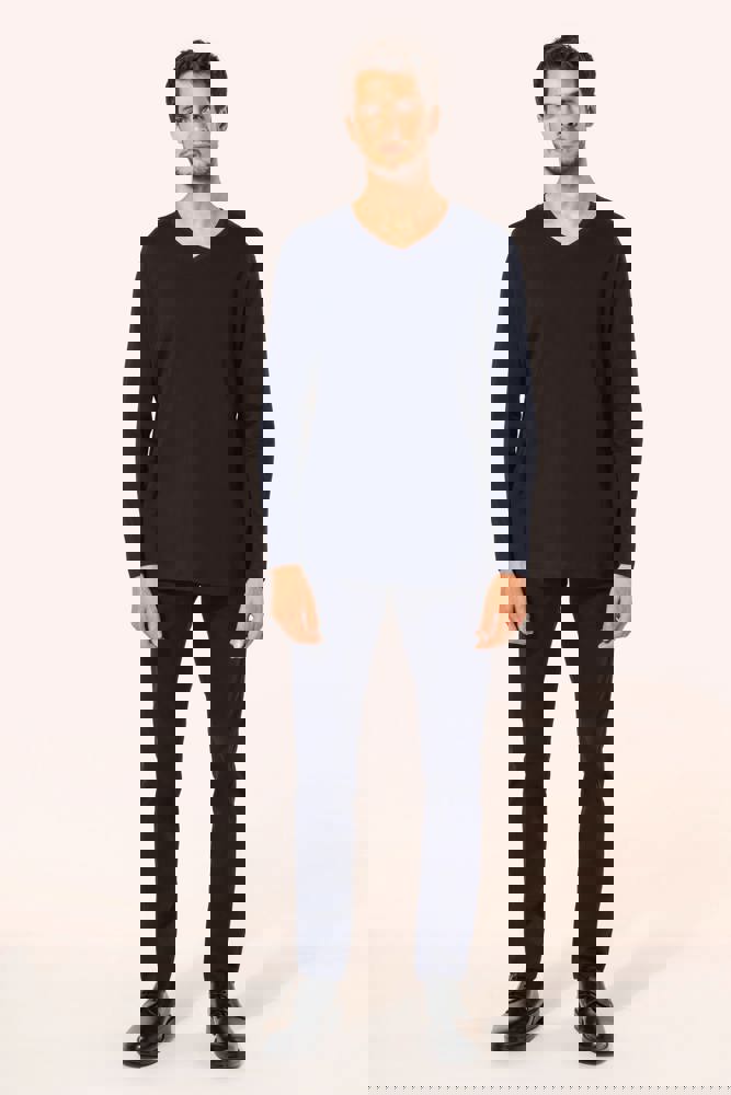 100% katoen. Tricot van gekamd Supima® katoen. Heel fijne, zachte en zijdeachtige jersey van grote kwaliteit. Gesneden en genaaide constructie. V-hals met ton-sur-ton nektape. Versteviging van de schoudernaad met een silicone bandje. De mouwuiteinden en onderkant zijn afgewerkt met een zoompje met dubbel stiksel. Geen merklabel in de kraag, maar enkel een maatlabel voor eenvoudige personalisatie.