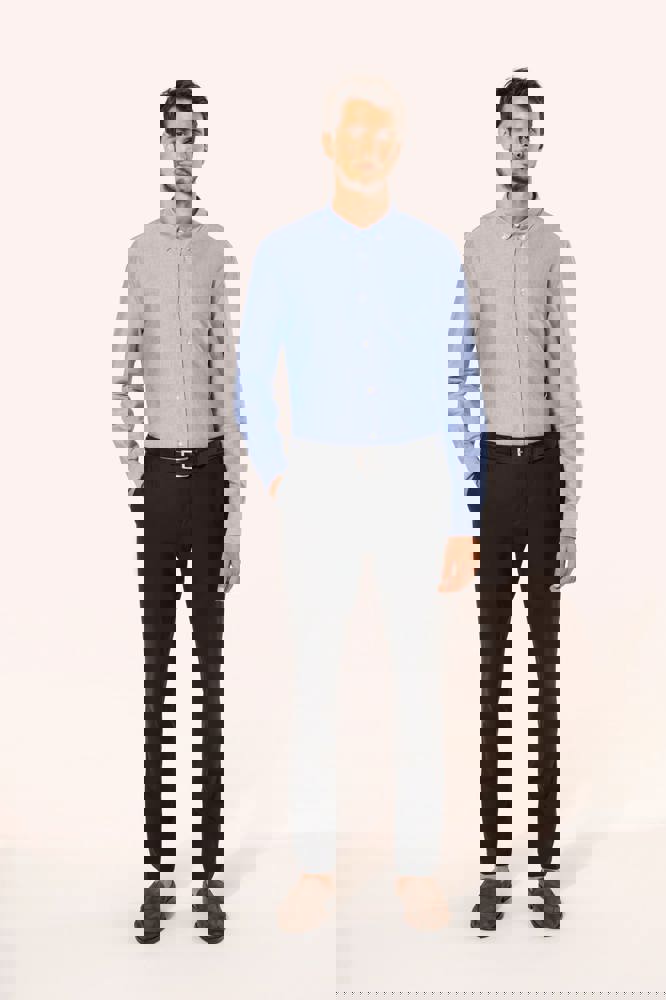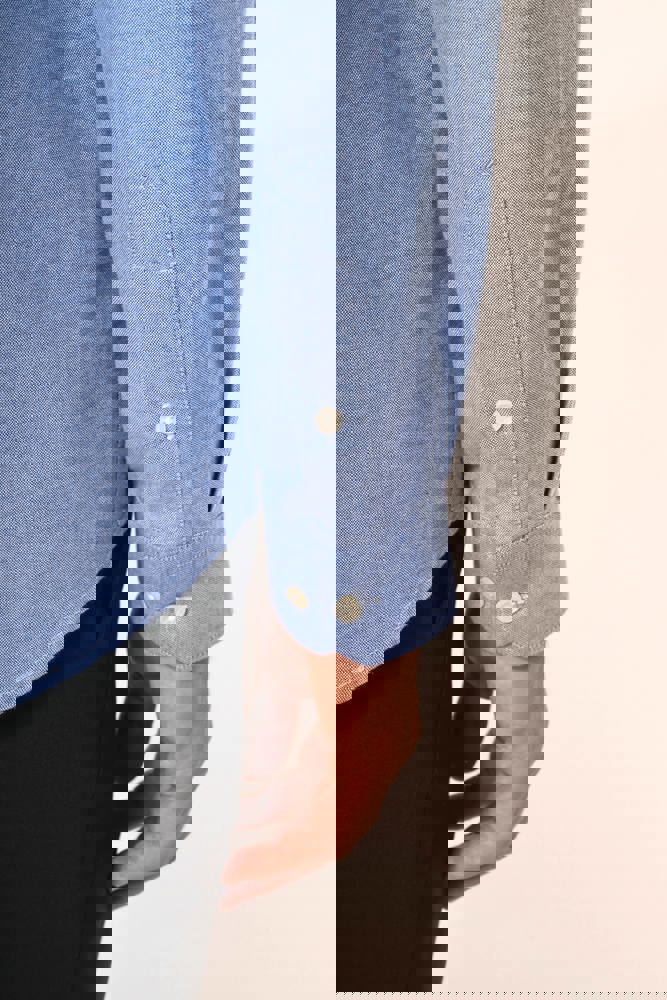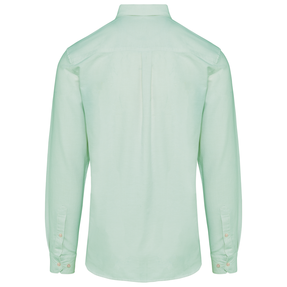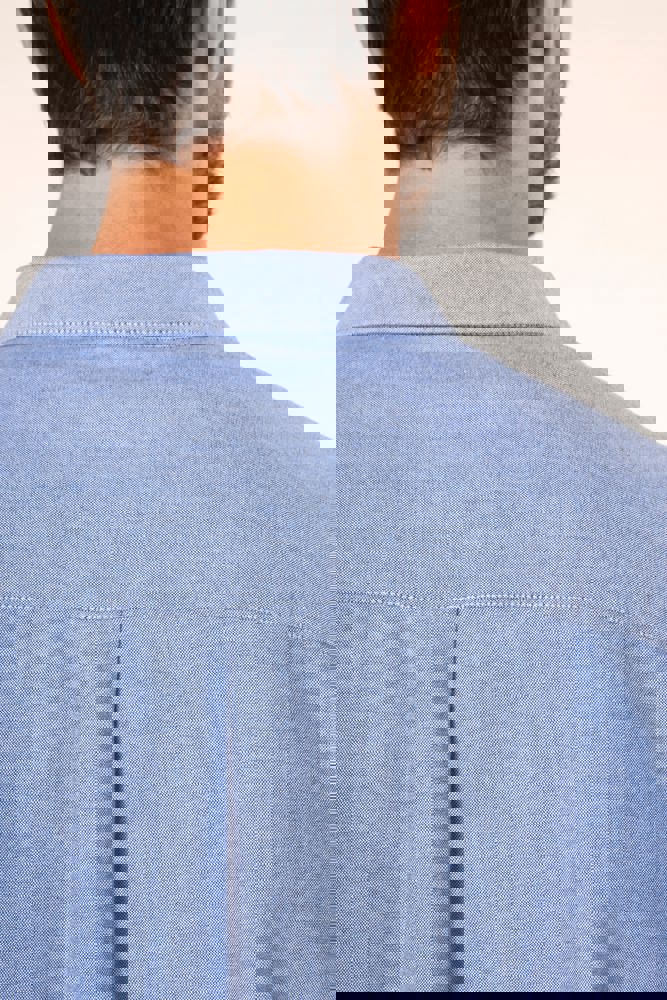 100% katoen. Gekamd katoen. Oxford stof. Rechte snit. Button-down overhemd kraag. Knoop met wit pareleffect op alle kleuren. Knoopsluiting middenvoor. Gevoerd rugjuk met plooien. Lange mouwen met verstelbare manchetten met afgeronde hoeken en geknoopt lipje. Geen merklabel, alleen een Tear Away label voor eenvoudige personalisatie. Gemaakt in Portugal.