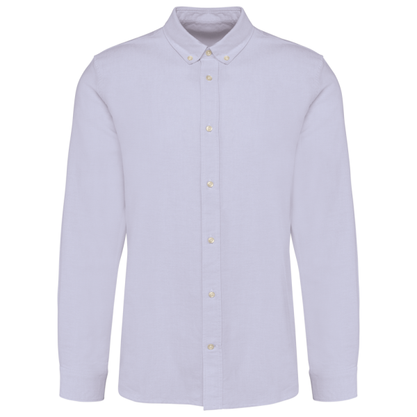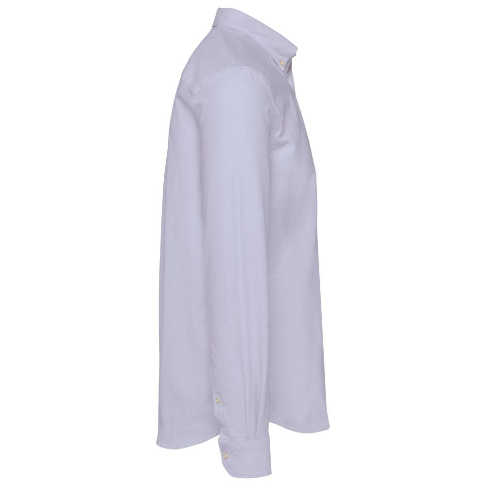 100% katoen. Gekamd katoen. Oxford stof. Rechte snit. Button-down overhemd kraag. Knoop met wit pareleffect op alle kleuren. Knoopsluiting middenvoor. Gevoerd rugjuk met plooien. Lange mouwen met verstelbare manchetten met afgeronde hoeken en geknoopt lipje. Geen merklabel, alleen een Tear Away label voor eenvoudige personalisatie. Gemaakt in Portugal.