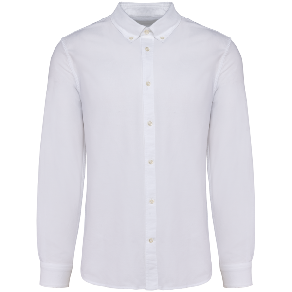 100% katoen. Gekamd katoen. Oxford stof. Rechte snit. Button-down overhemd kraag. Knoop met wit pareleffect op alle kleuren. Knoopsluiting middenvoor. Gevoerd rugjuk met plooien. Lange mouwen met verstelbare manchetten met afgeronde hoeken en geknoopt lipje. Geen merklabel, alleen een Tear Away label voor eenvoudige personalisatie. Gemaakt in Portugal.