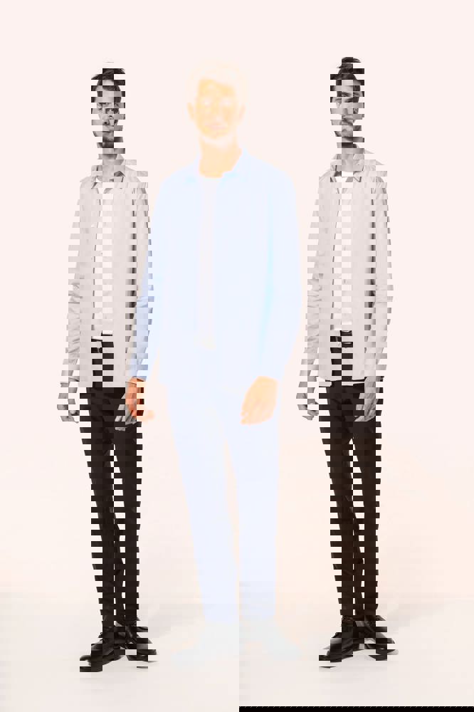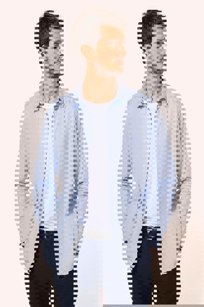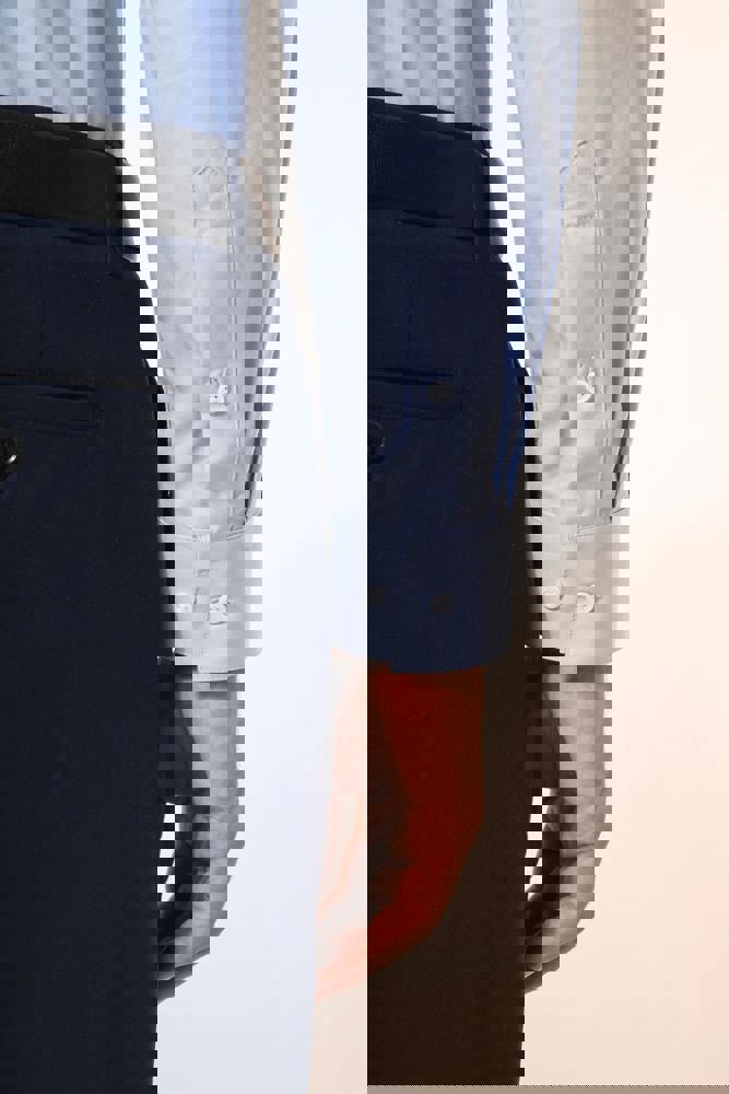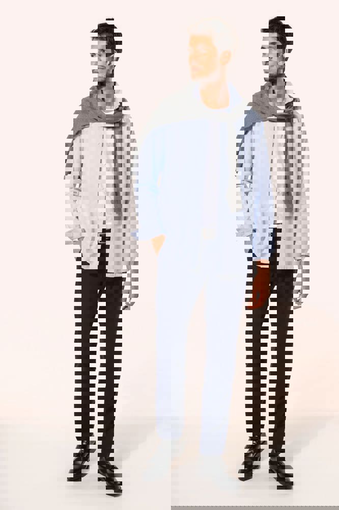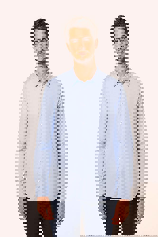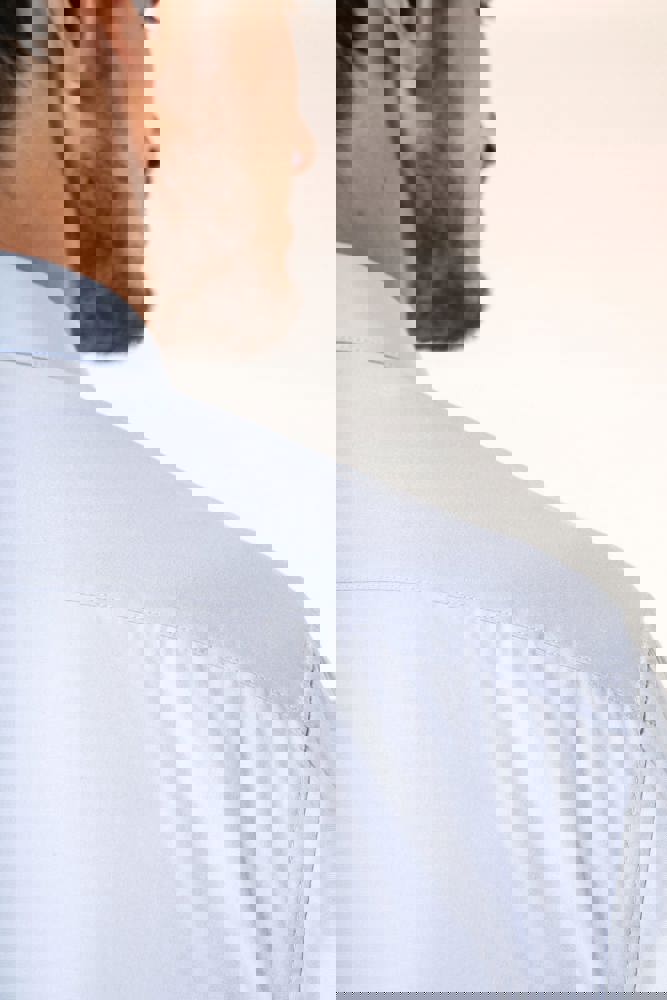 100% katoen. Gekamd katoen. Popeline. Franse kraag met uitneembare baleinen. Paarlemoeren knoopjes. Inzetsel aan de bovenkant van de rug. Manchetten met rechte hoeken en 2 knopen. Verstevigende driehoekjes op de zijkanten. Geen merklabel, maar enkel een maatlabel voor eenvoudige personalisatie.