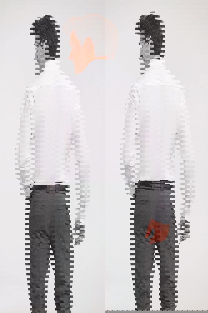 100% gekamd katoen micro twill. Tailored fit. Verstevigde kraag. Mouwuiteinden met 2 knoopjes met ruimte voor manchetknopen. Afgeronde onderkant. Hoeft minimaal gestreken te worden. Geen borstzak. Reserveknoopjes.