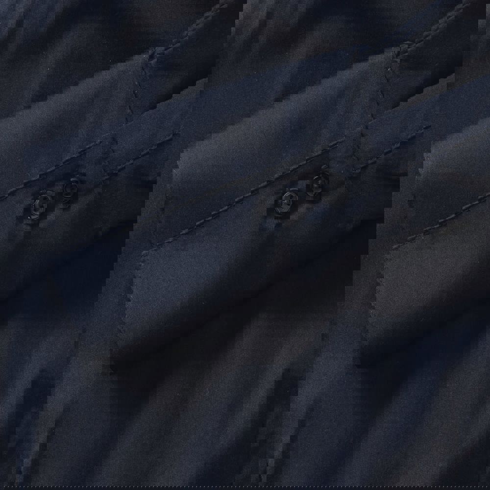 75% katoen / 25% elastomultiester ( Lycra® T400). Deze nieuwe vezel zorgt voor comfort, elasticiteit, duurzame vorm en afvoer van transpiratie. Moderne kraag. Verborgen knooplijst. 'Princess' panelen zonder zijnaden. Rugplooitjes. Napolitaanse manchetten. Getailleerde snit.