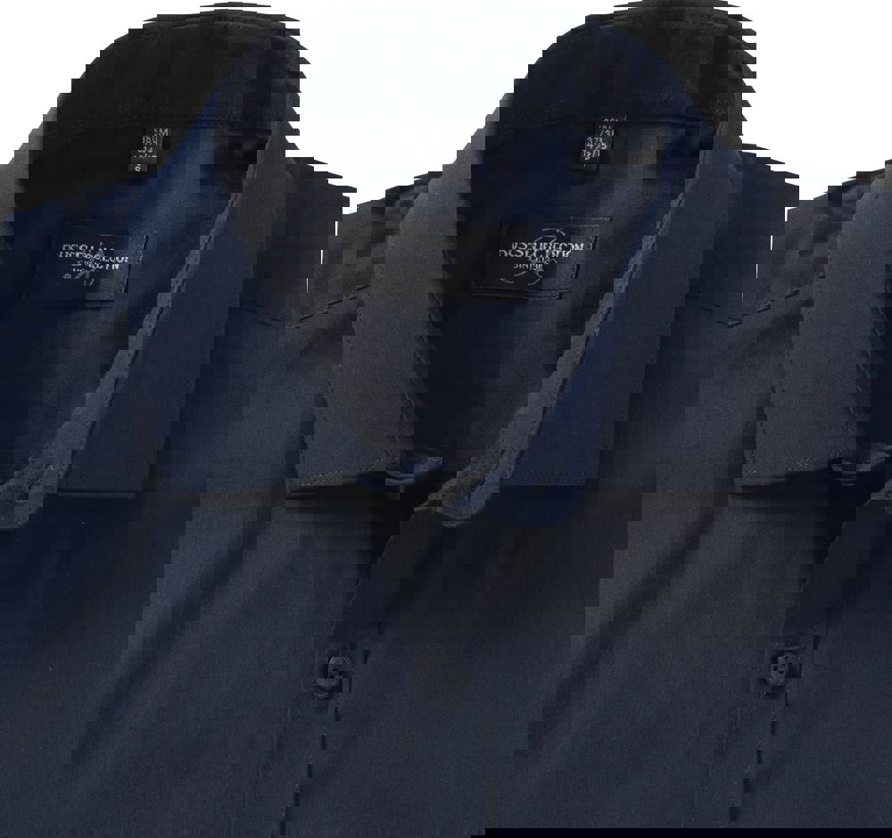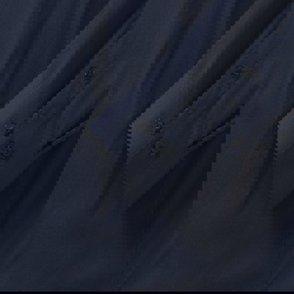 75% katoen / 25% elastomultiester ( Lycra® T400). Deze nieuwe vezel zorgt voor comfort, elasticiteit, duurzame vorm en afvoer van transpiratie. Half bedekte kraag en korte overslag. Rechte knooplijst. Rugplooitjes. Vierkante manchetten met ruimte voor manchetknopen. Getailleerde snit.