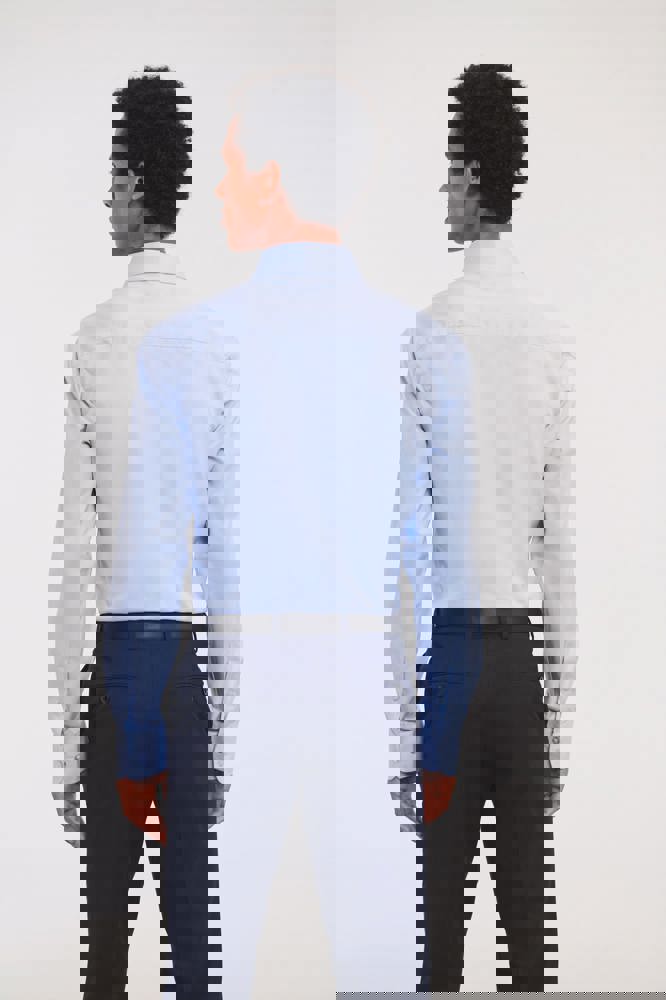 84% katoen / 16% polyester. Dit overhemd met visgraatmotief is een geschikt alternatief voor het klassieke Oxford shirt. Half bedekte kraag en korte overslag. Smalle knooplijst. Afgeronde manchetten. Getailleerde snit. EasyCare.