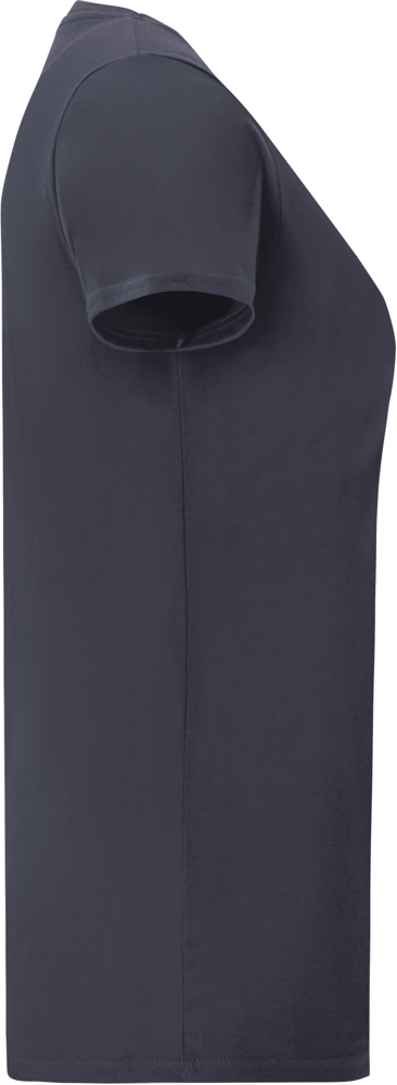 100% gekamd ringgesponnen katoen (Heather Grey: 97% katoen / 3% polyester en Dark Heather Grey: 52% katoen / 48% polyester). Ronde kraag met nektape aan de binnenkant. Zijnaden voor een getailleerde, vrouwelijke snit. Voelt zacht aan.