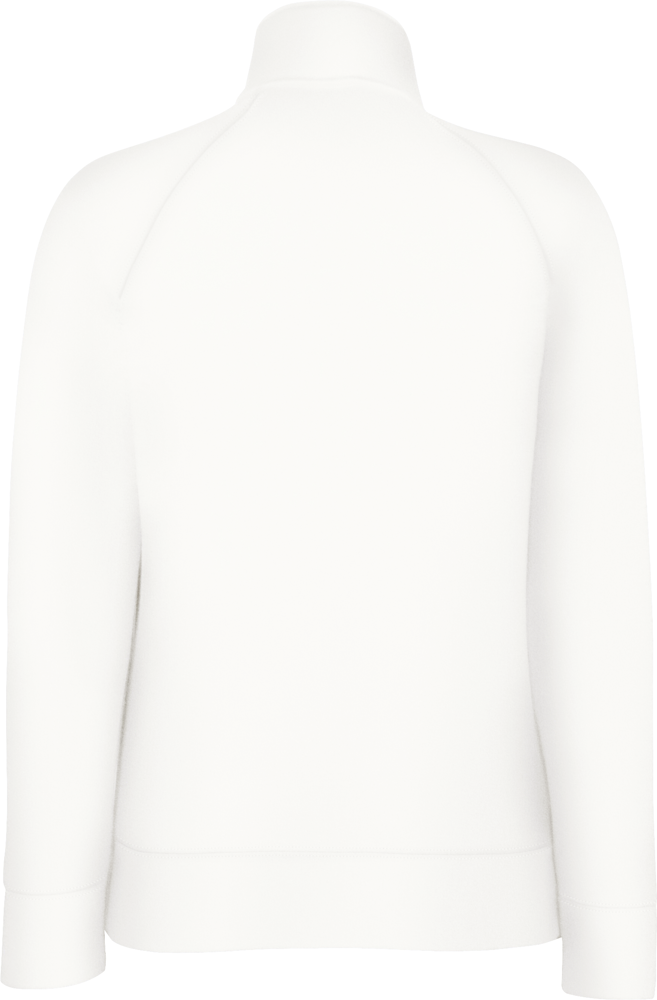 White et Heather Grey 260 g/m². 70% katoen / 30% polyester. Opstaande kraag met nektape in jersey. Volledige verborgen ritssluiting. 2 voorzakken. Mouwuiteinden en onderkant in rib katoen / elasthan.