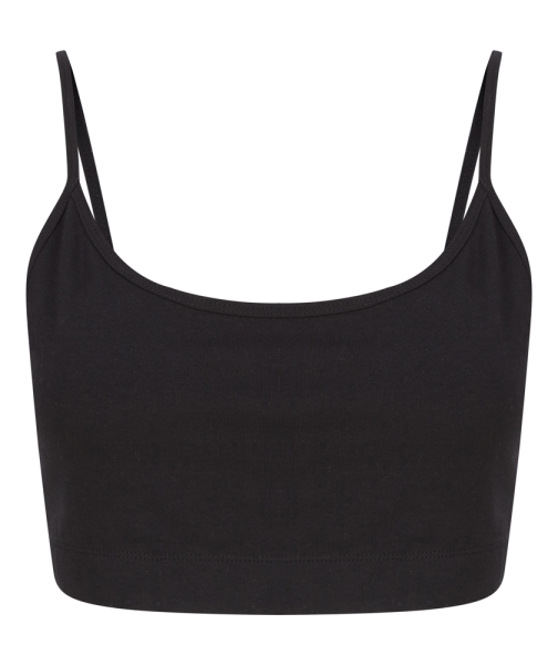 48% geregenereerd katoen / 47% gerecycleerd polyester/ 5% elasthan. Korte top. Regelbare schouderbandjes. Dubbele dikte aan de voorkant. Geribde elastische band. Zonder etiket.