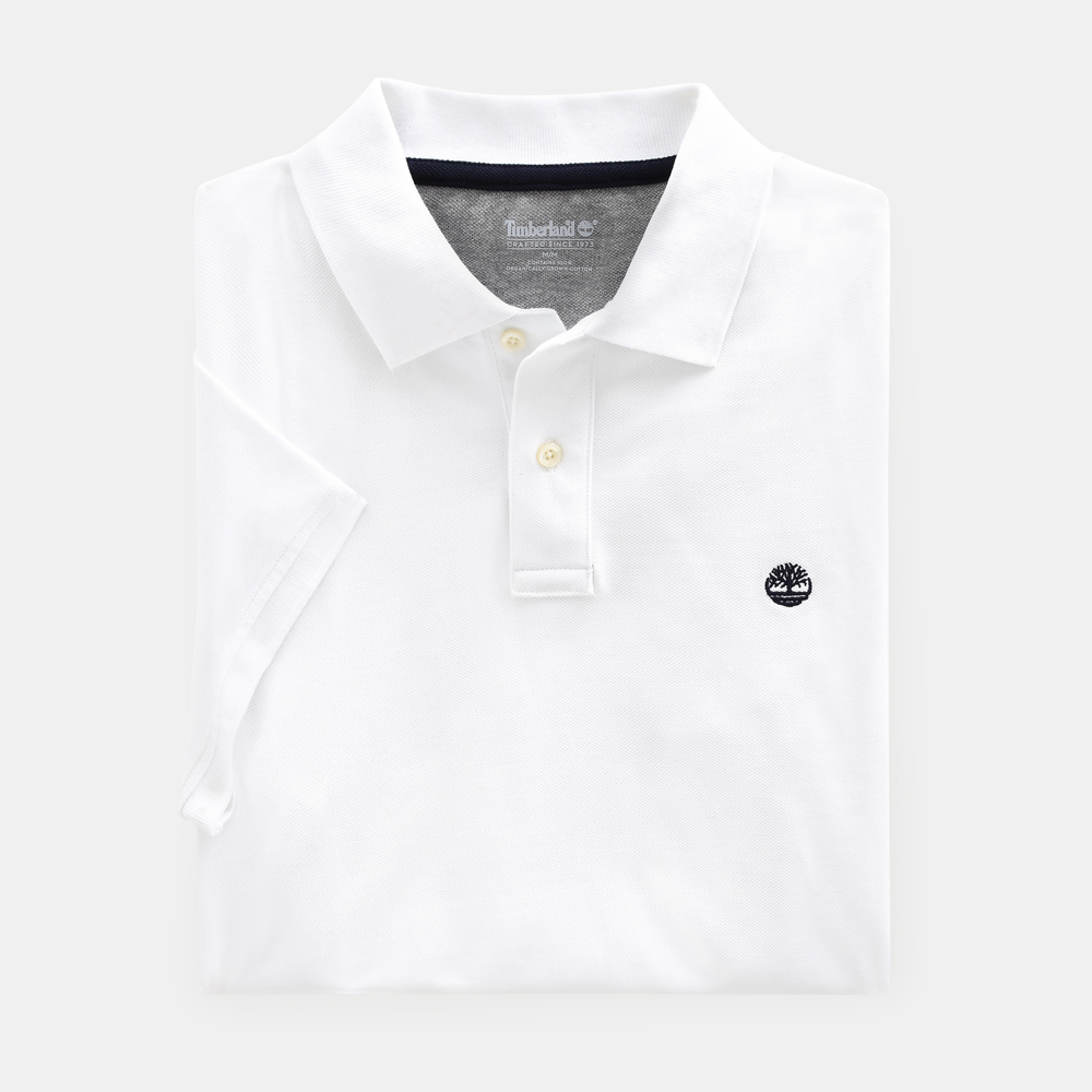 100% biologisch katoen. Knooplijst met twee knopen. Zijsplitten. Casual, rechte snit. Contrasterende nektape. Het boompje van Timberland® werd links op de borst geborduurd.