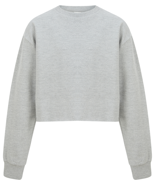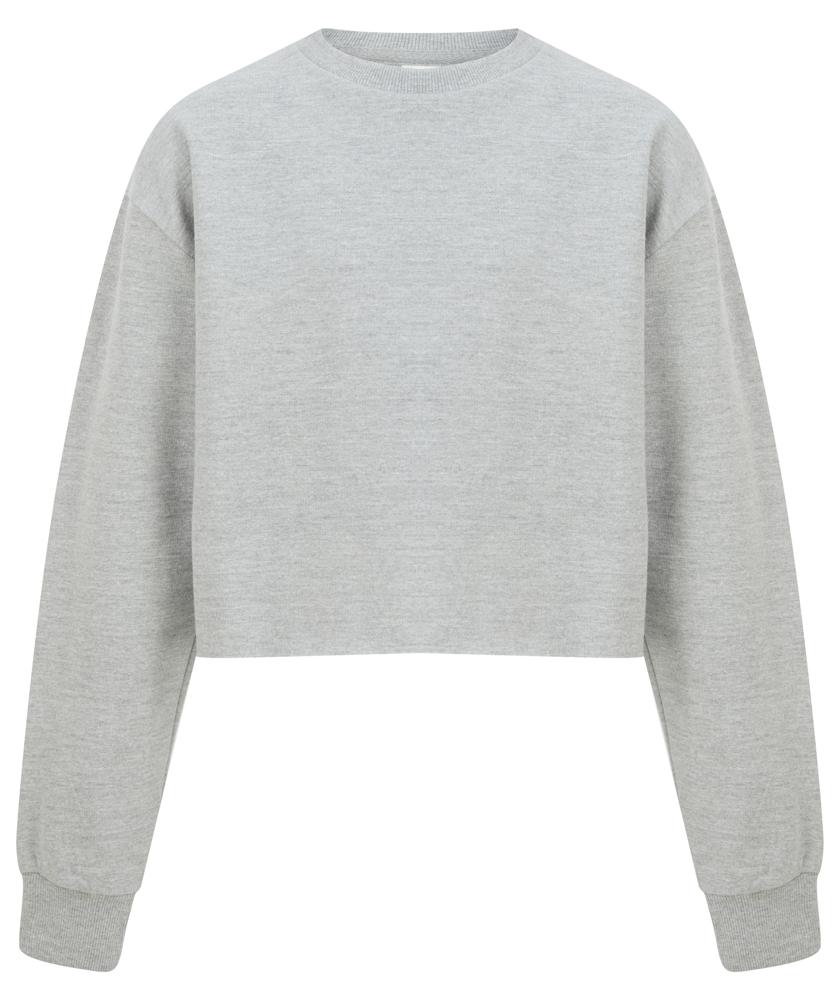 Black: 80% katoen / 20% polyester. Heather grey: 70% katoen / 30% viscose. Binnenzijde van fleece. Oversized sweater met verkorte, onafgewerkte zoom. Opgestroopte mouwen. Afhangende schouders. Afneembaar etiket.