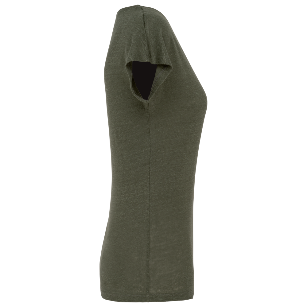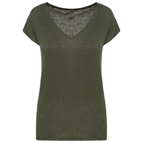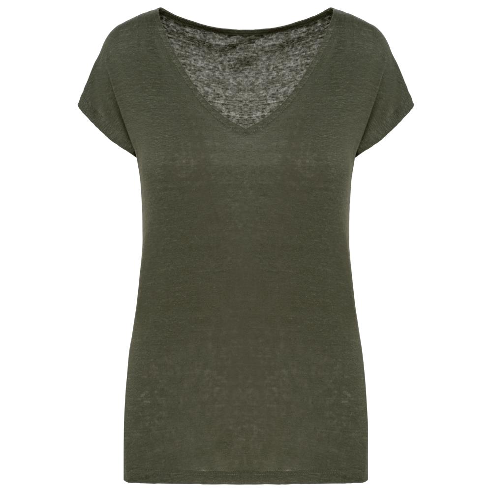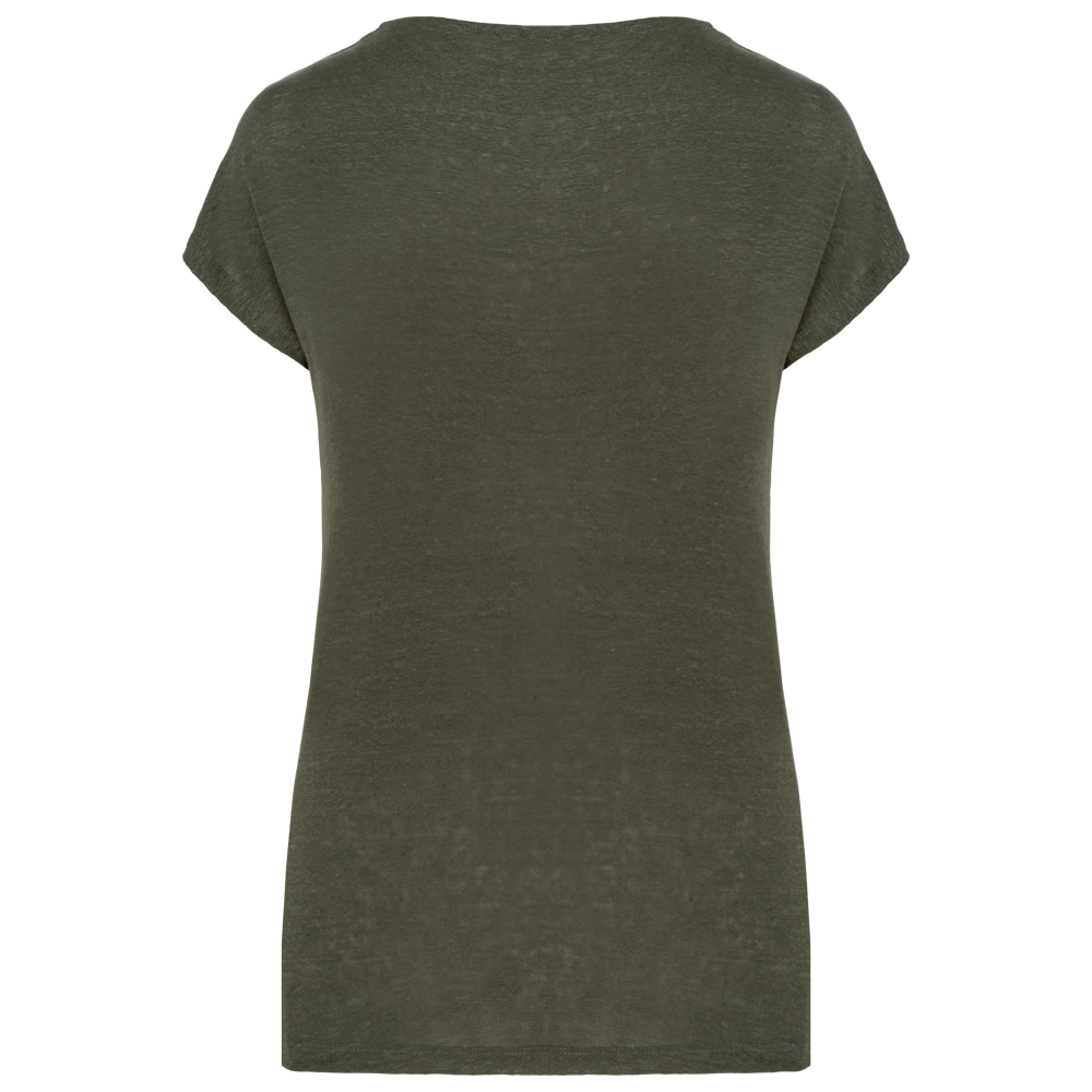 100 % Linnen. Tricot. Rechte snit. Zijnaden. Hals in de hoofdstof. Nektape in de hoofdstof in de kraag. Zoom met dubbel stiksel aan de mouwuiteinden en onderkant.