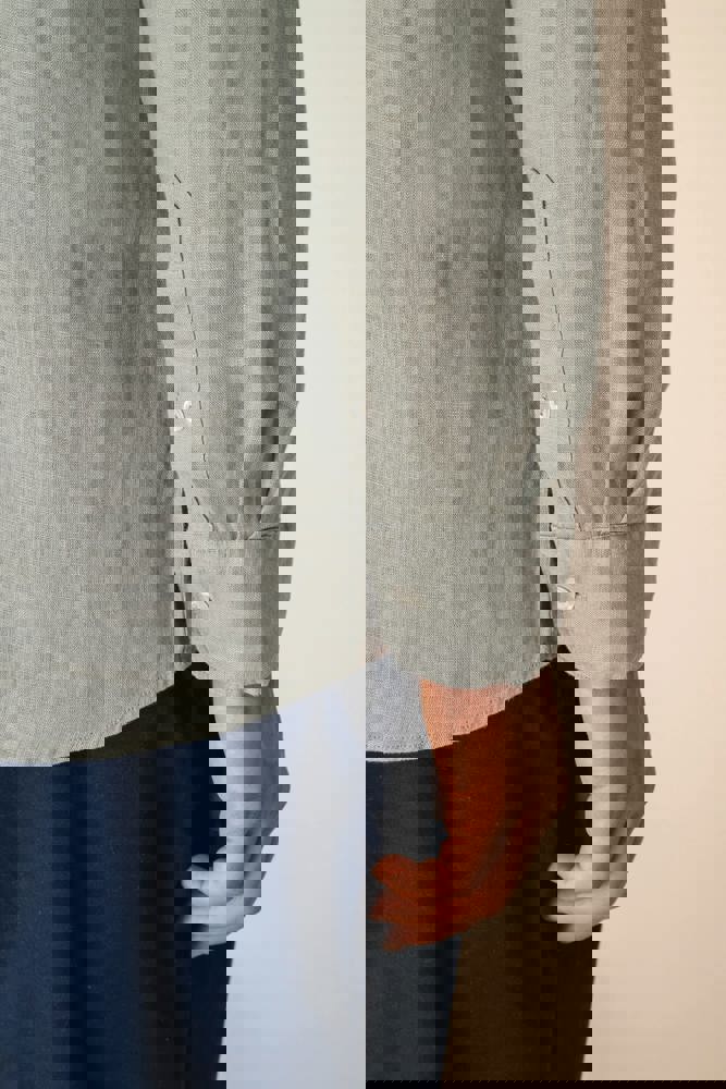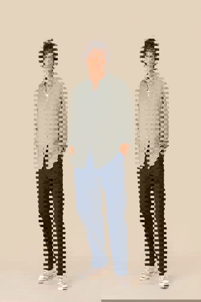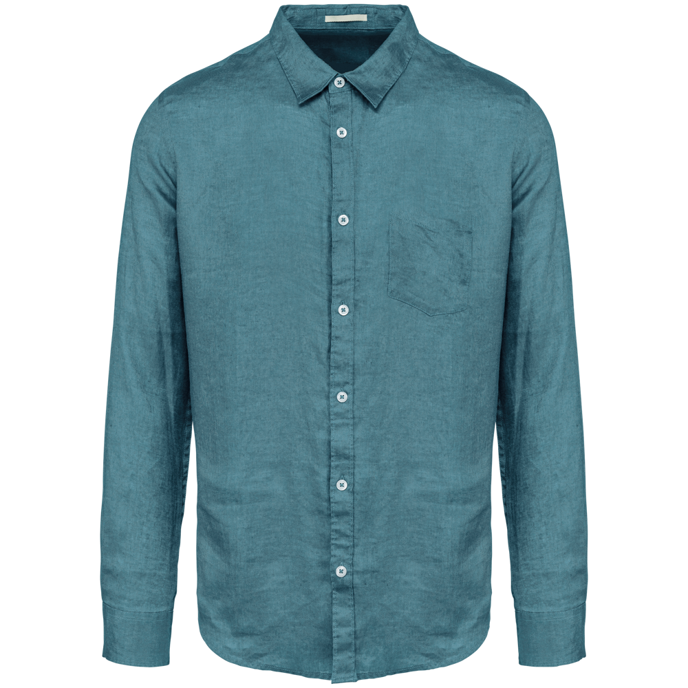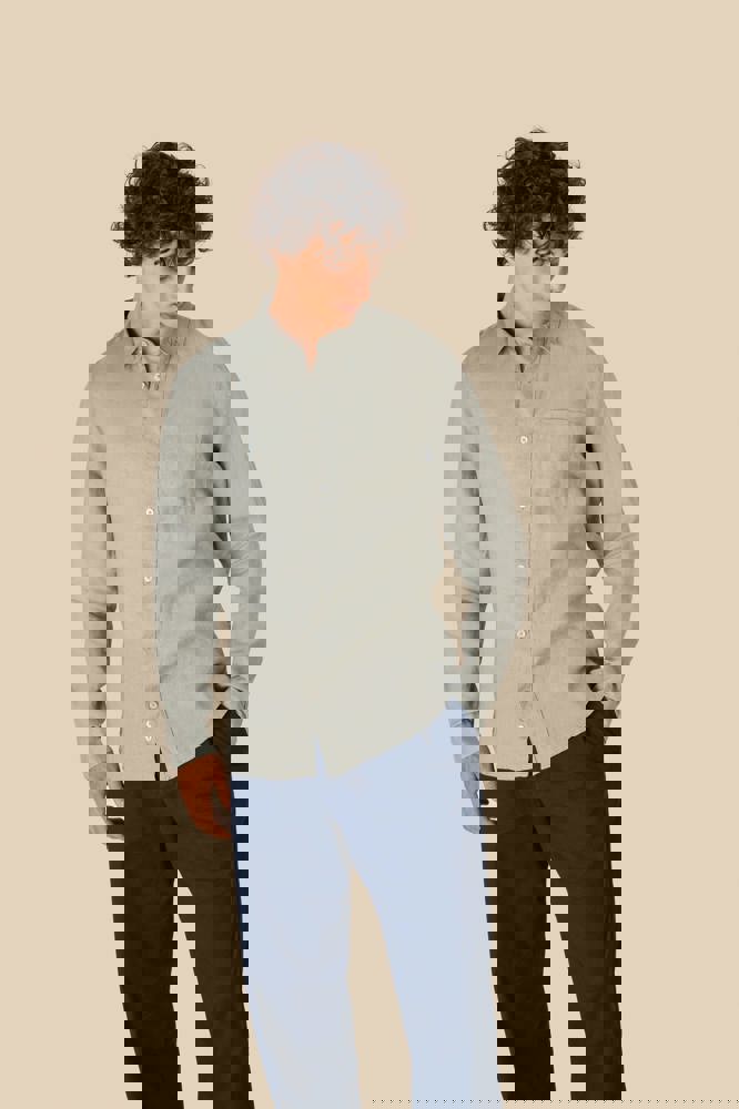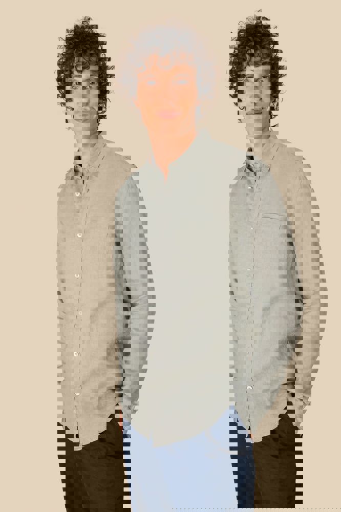 100 % Linnen. Geweven. Afgewassen blouse. Rechte snit. Klassieke knooplijst met knopen met parelmoereffect. Borstzak aan de linkerkant Inzetsel op de rug met plooi voor meer bewegingsvrijheid. Knopen op de polsband met verstelbaar uiteinde. Contrasterend Natural biesje aan de binnenkant van de kraagstaander. De kleur Linen werd niet geverfd en kan variëren van product tot product.
