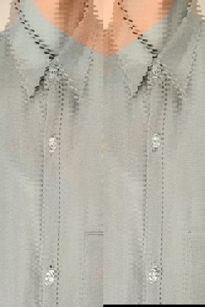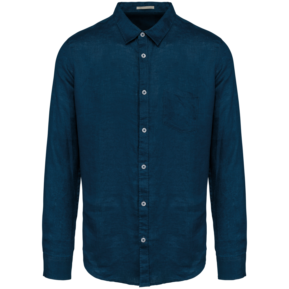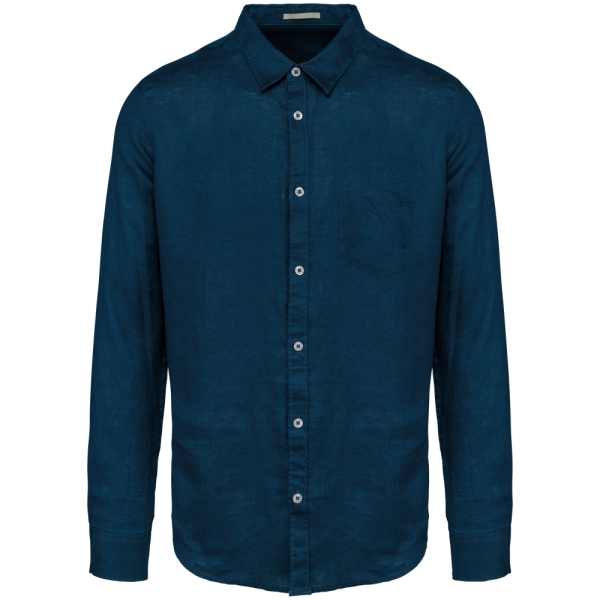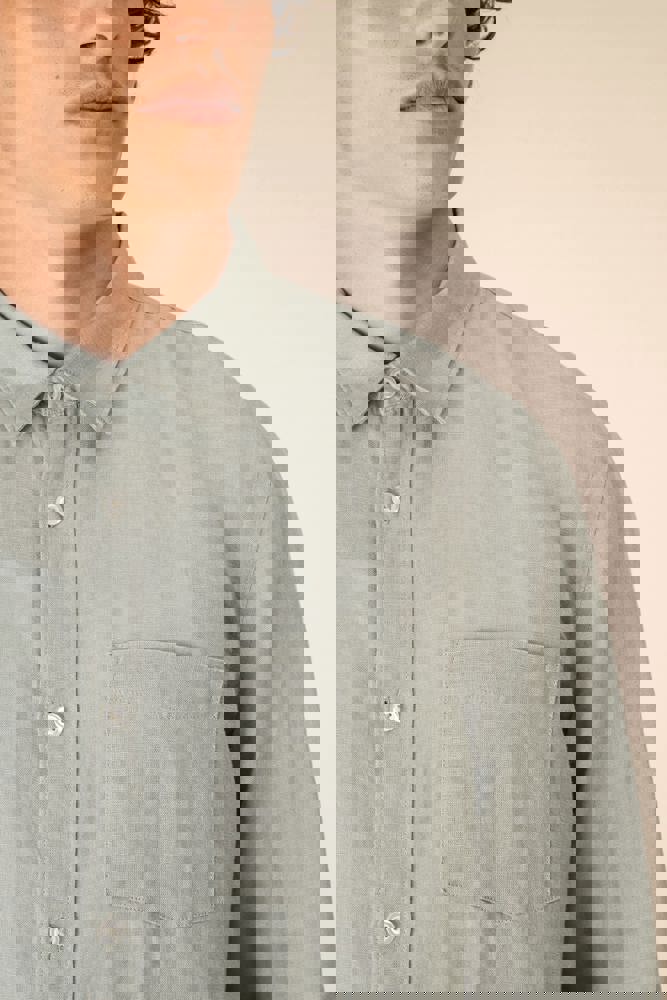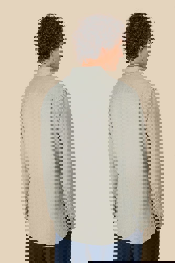 100 % Linnen. Geweven. Afgewassen blouse. Rechte snit. Klassieke knooplijst met knopen met parelmoereffect. Borstzak aan de linkerkant Inzetsel op de rug met plooi voor meer bewegingsvrijheid. Knopen op de polsband met verstelbaar uiteinde. Contrasterend Natural biesje aan de binnenkant van de kraagstaander. De kleur Linen werd niet geverfd en kan variëren van product tot product.