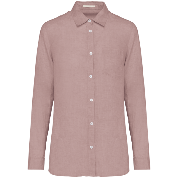 100 % Linnen. Geweven. Afgewassen blouse. Rechte snit. Klassieke knooplijst met knopen met parelmoereffect. Borstzak aan de linkerkant Inzetsel op de rug met plooi voor meer bewegingsvrijheid. Knopen op de polsband met verstelbaar uiteinde. Contrasterend Natural biesje aan de binnenkant van de kraagstaander. De kleur Linen werd niet geverfd en kan variëren van product tot product.